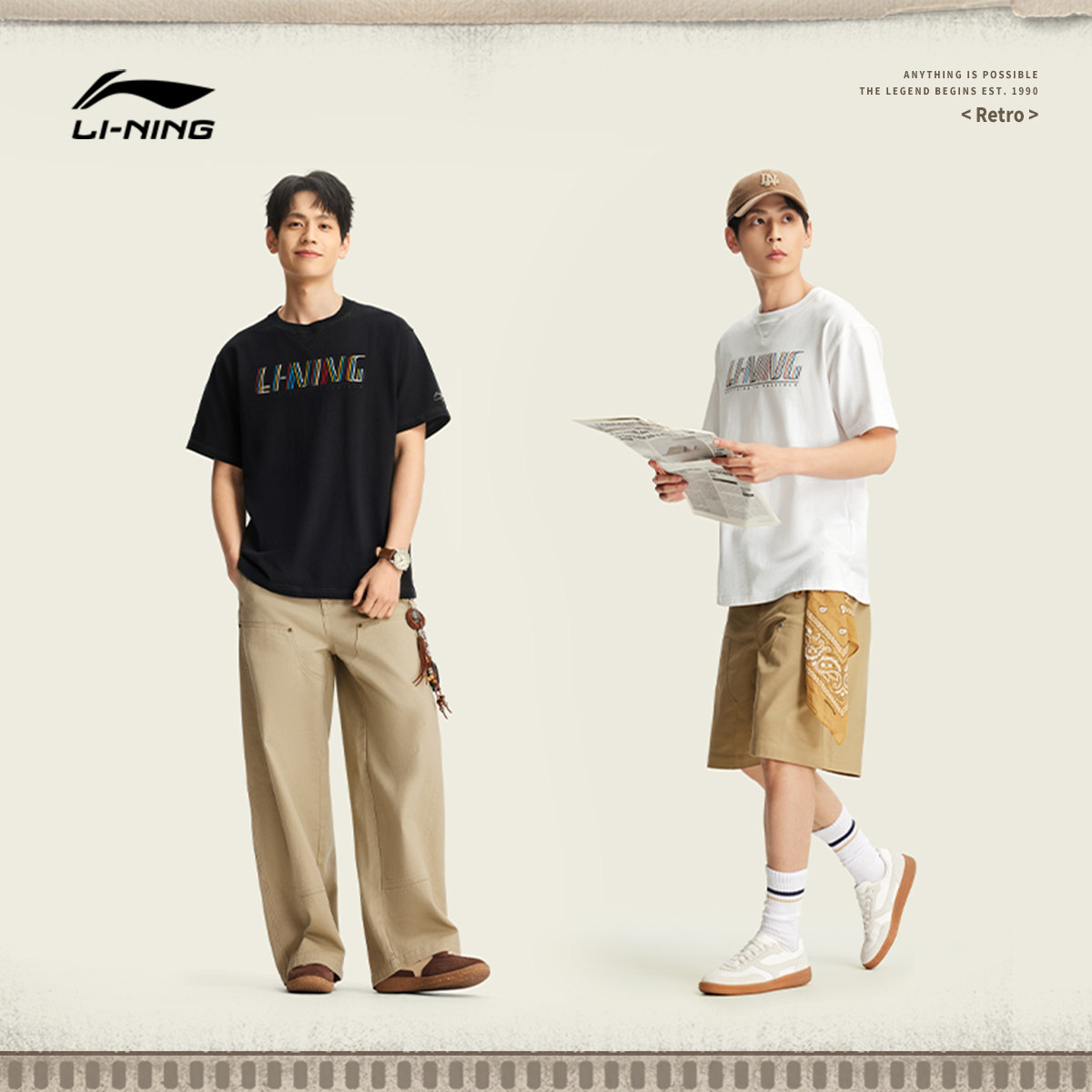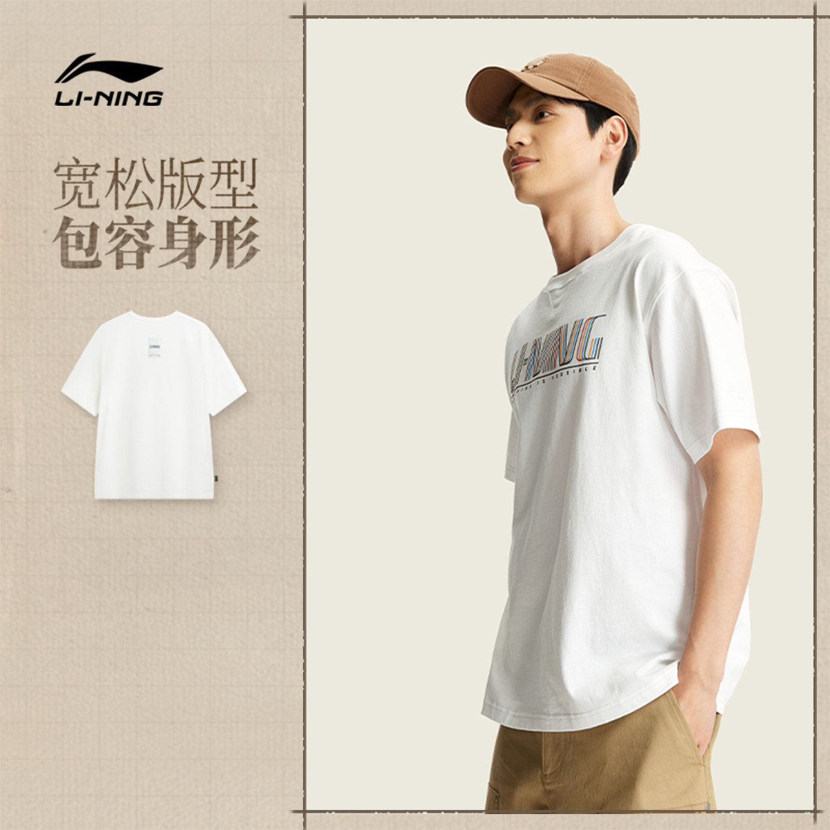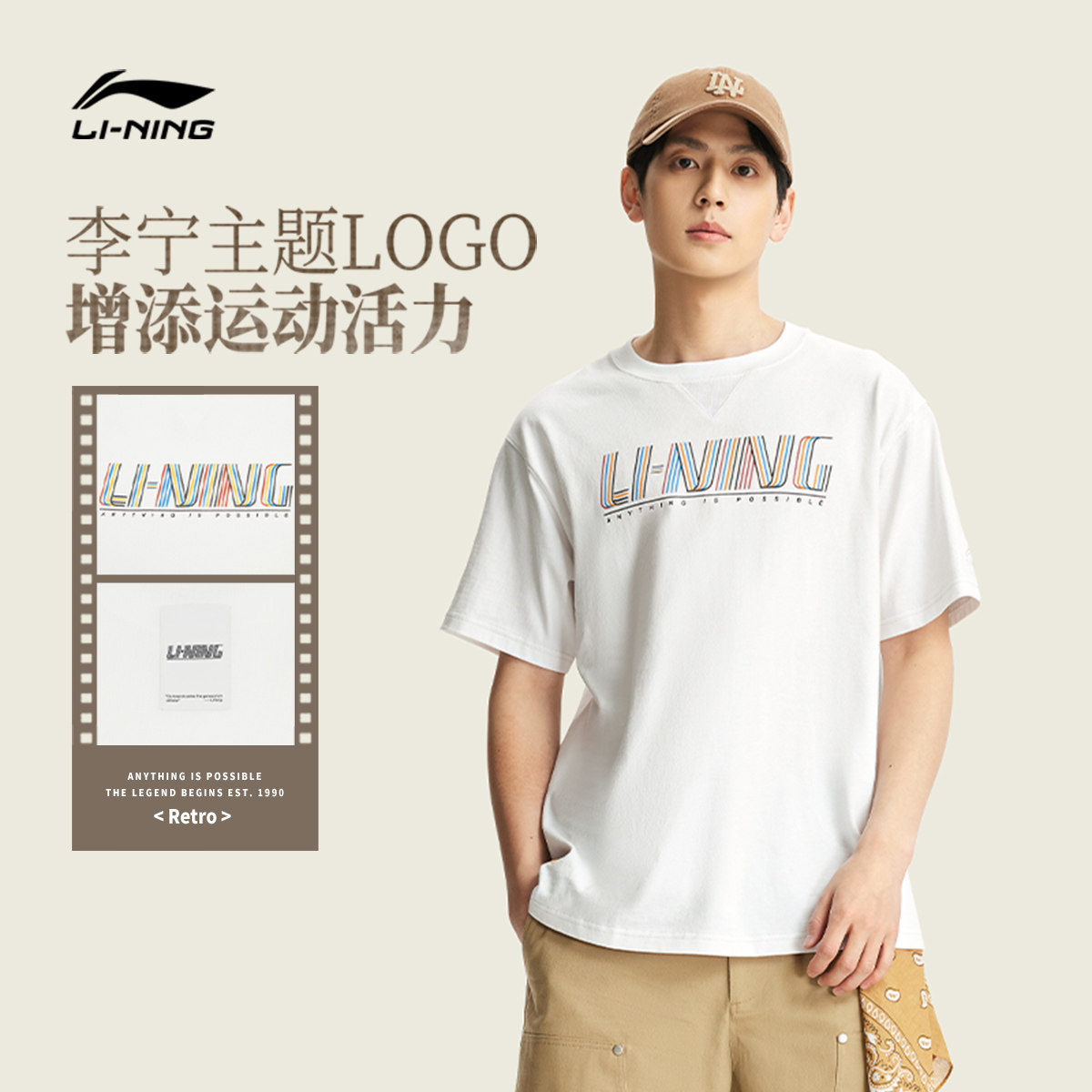 李宁短袖男春夏2026新款情侣美式复古半袖圆领宽松上衣女运动T恤