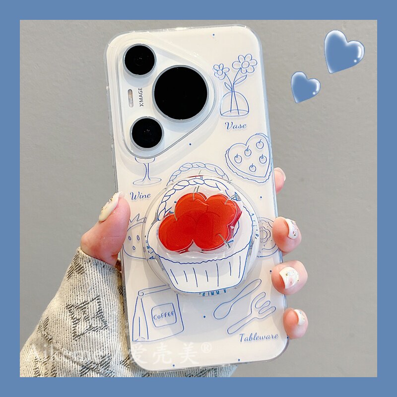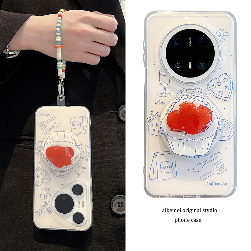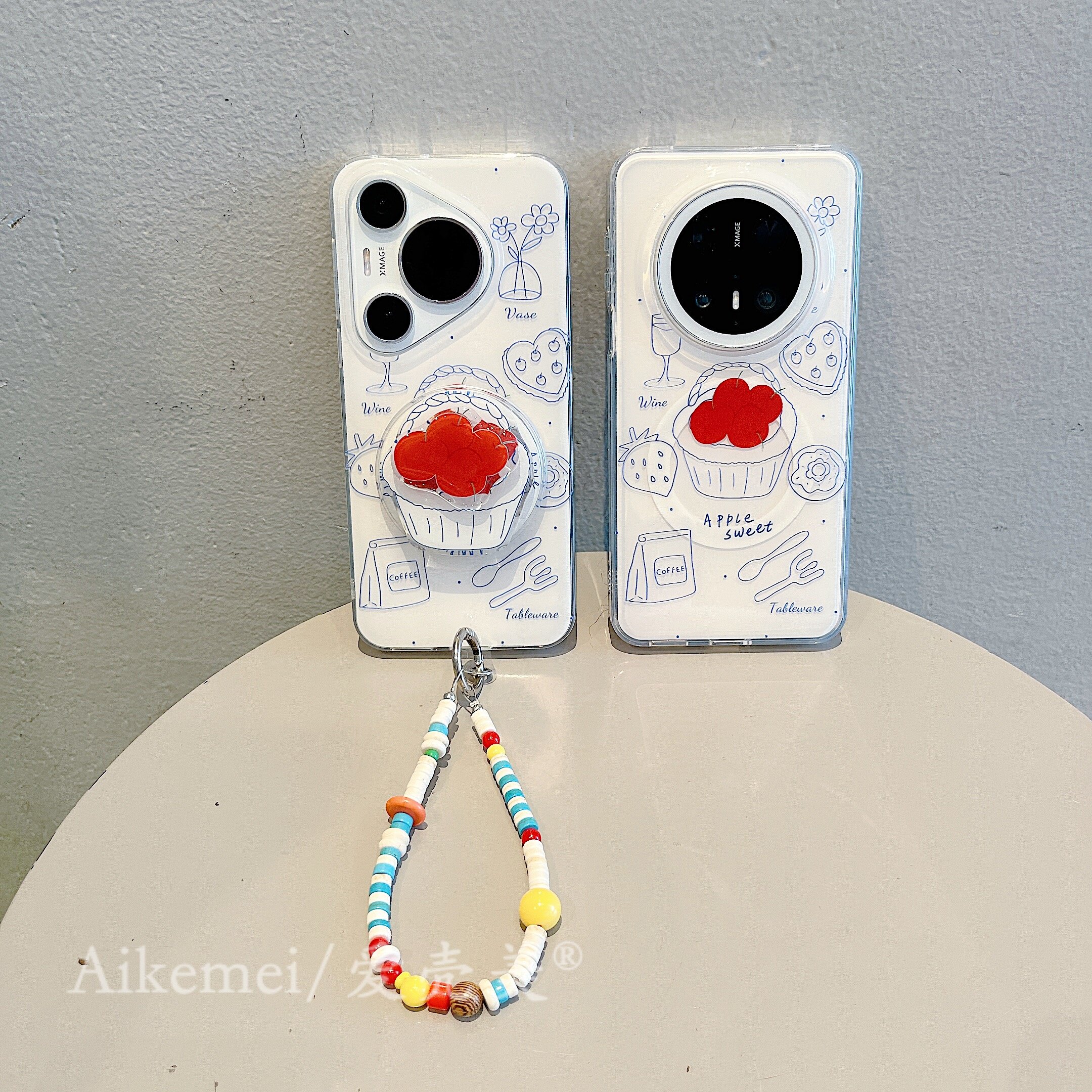 适用华为pura80pro+手机壳创意涂鸦果篮红苹果磁吸支架Pura80链条挂绳p70pro新款双层mate70pro+全包防摔女款