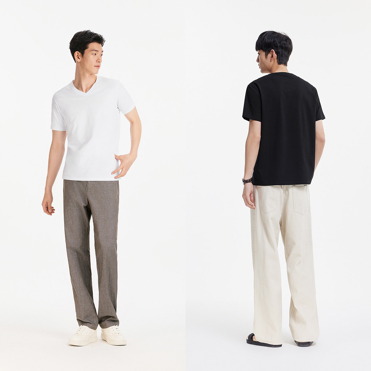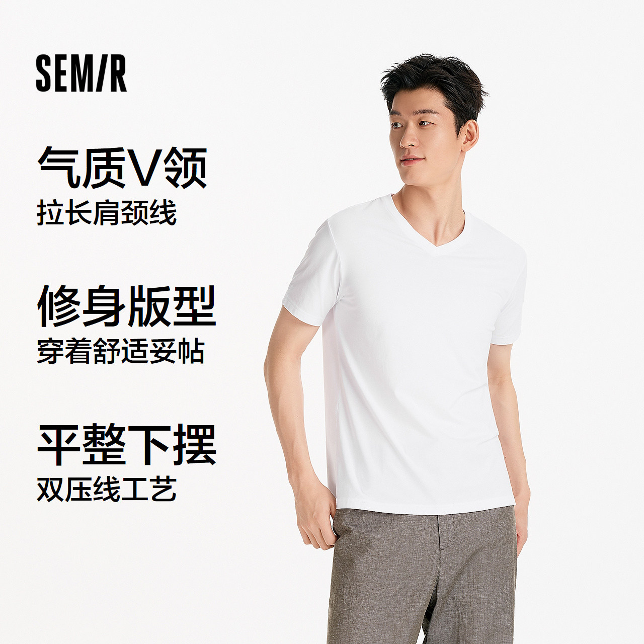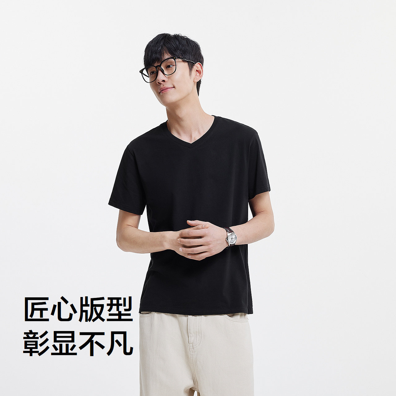 [商场同款]森马短袖T恤男修身V领内搭2025夏新款针织上衣纯色百搭
