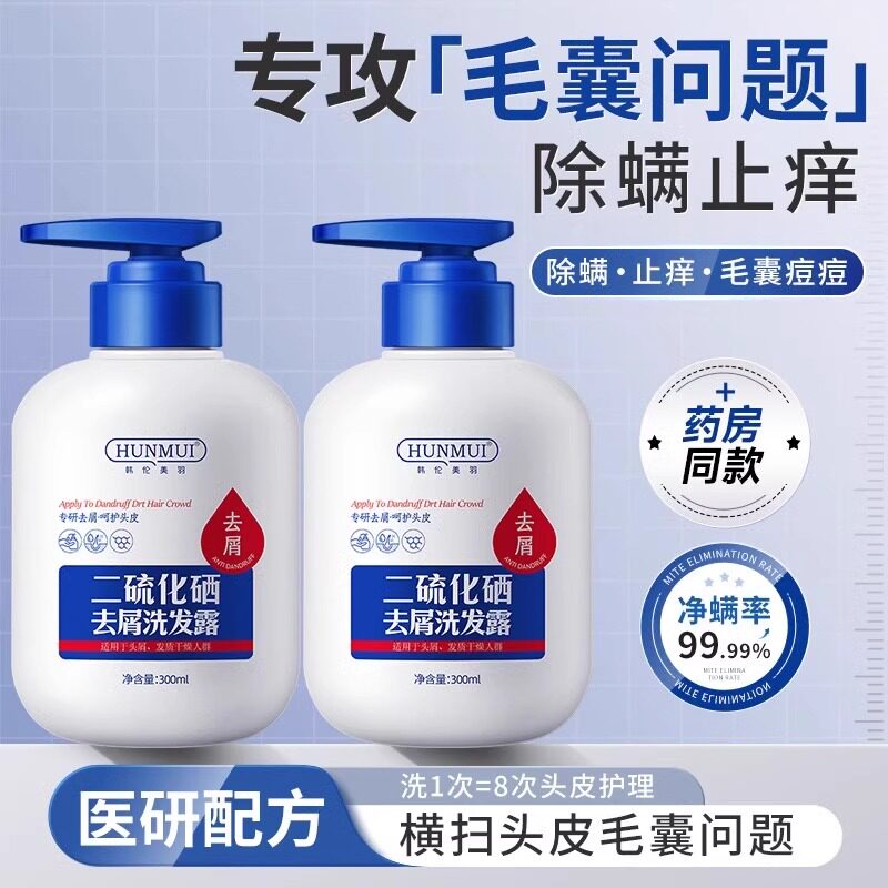 韩伦美羽二硫化硒清爽控油除螨祛痘洗发液去屑止痒头发洗发水洗头
