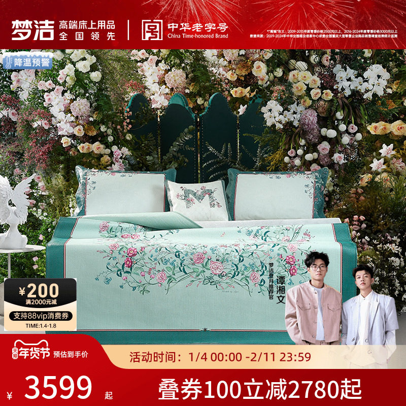 【商场同款】梦洁家纺优雅进口头层牛皮冰丝凉席夏季席子