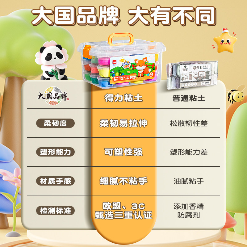 得力超轻粘土儿童彩泥橡皮泥24色无毒黏土幼儿园专用手工手办食品diy材料包彩泥低年级玩具
