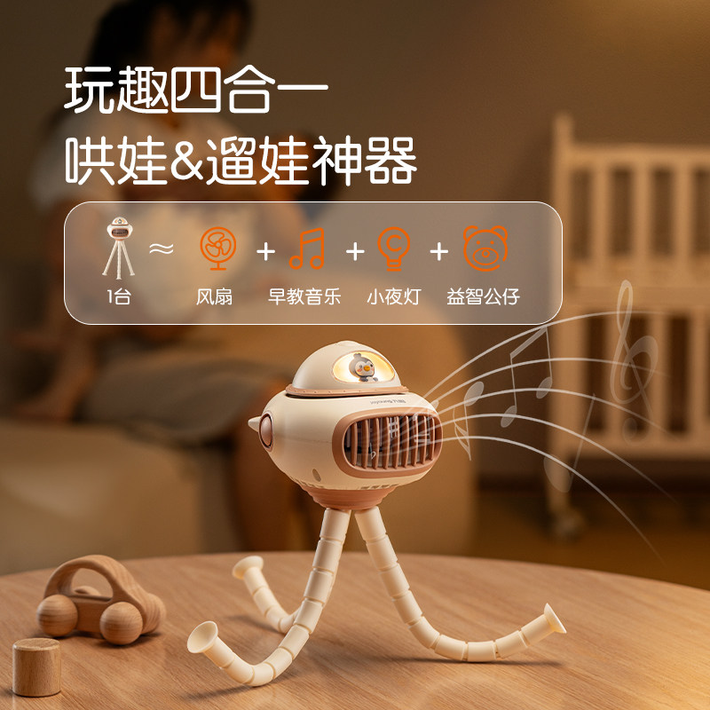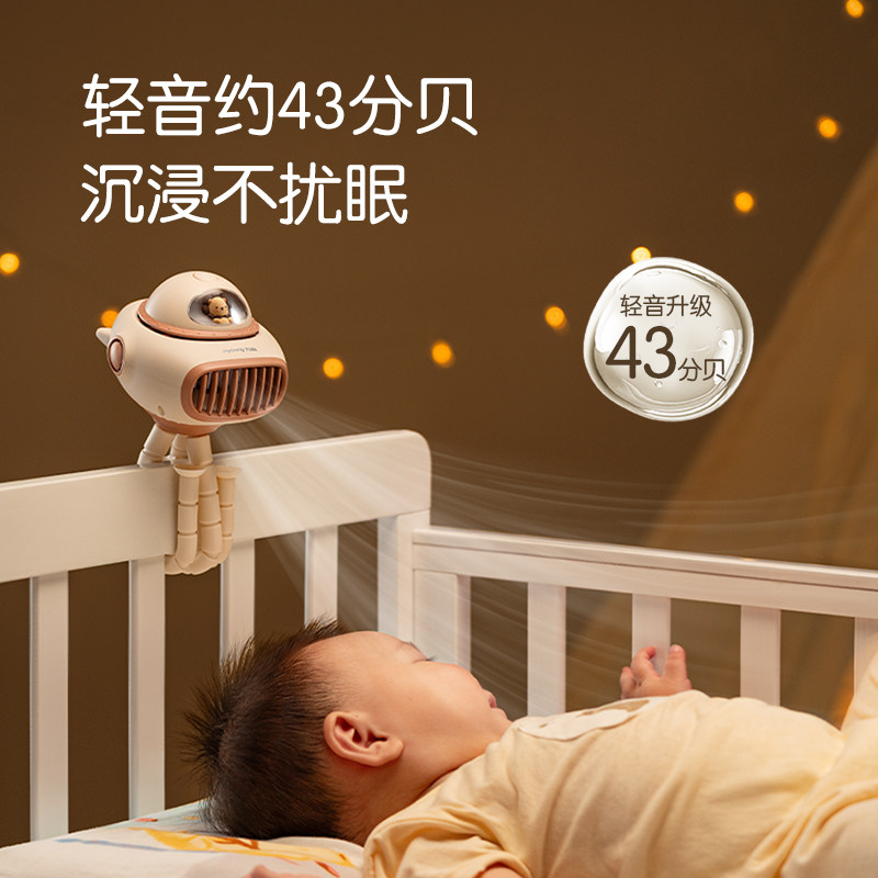 九阳婴儿车USB小风扇八爪鱼无叶可摇头充电夹子便携式户外桌面儿童宝宝手推车婴儿床防夹手轻音早教音乐