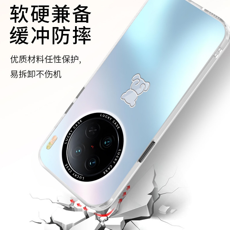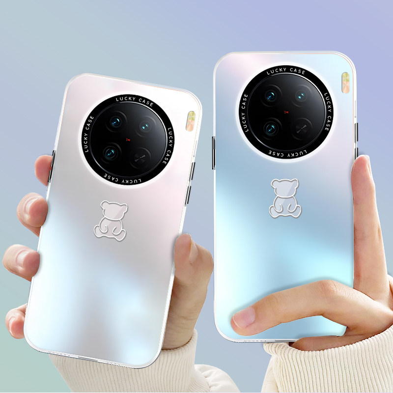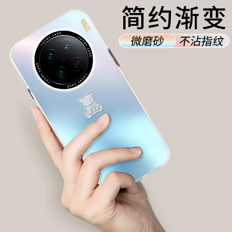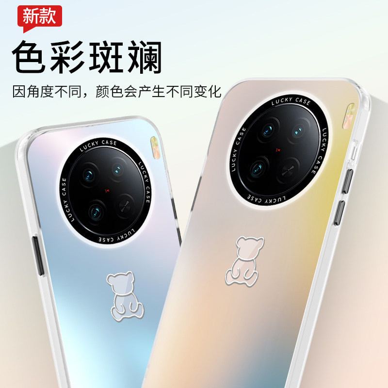 适用vivox90手机壳新款极光镭射可爱小熊x90s男女网红渐变色全包防摔x90pro亚克力卡通超薄个性创意保护套