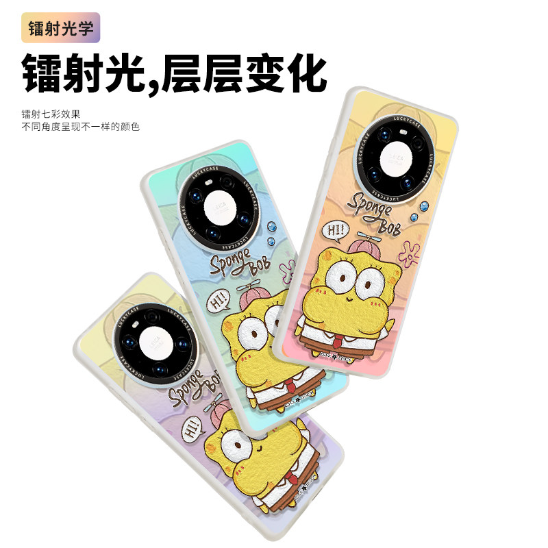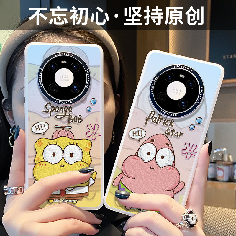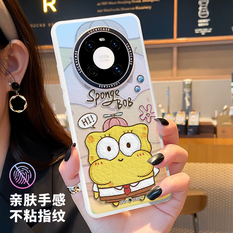 可爱海绵宝宝适用于华为mate70pro+手机壳mate60新30pro全包mate50防摔个性40Pro创意镭射变色派大星卡通闺蜜