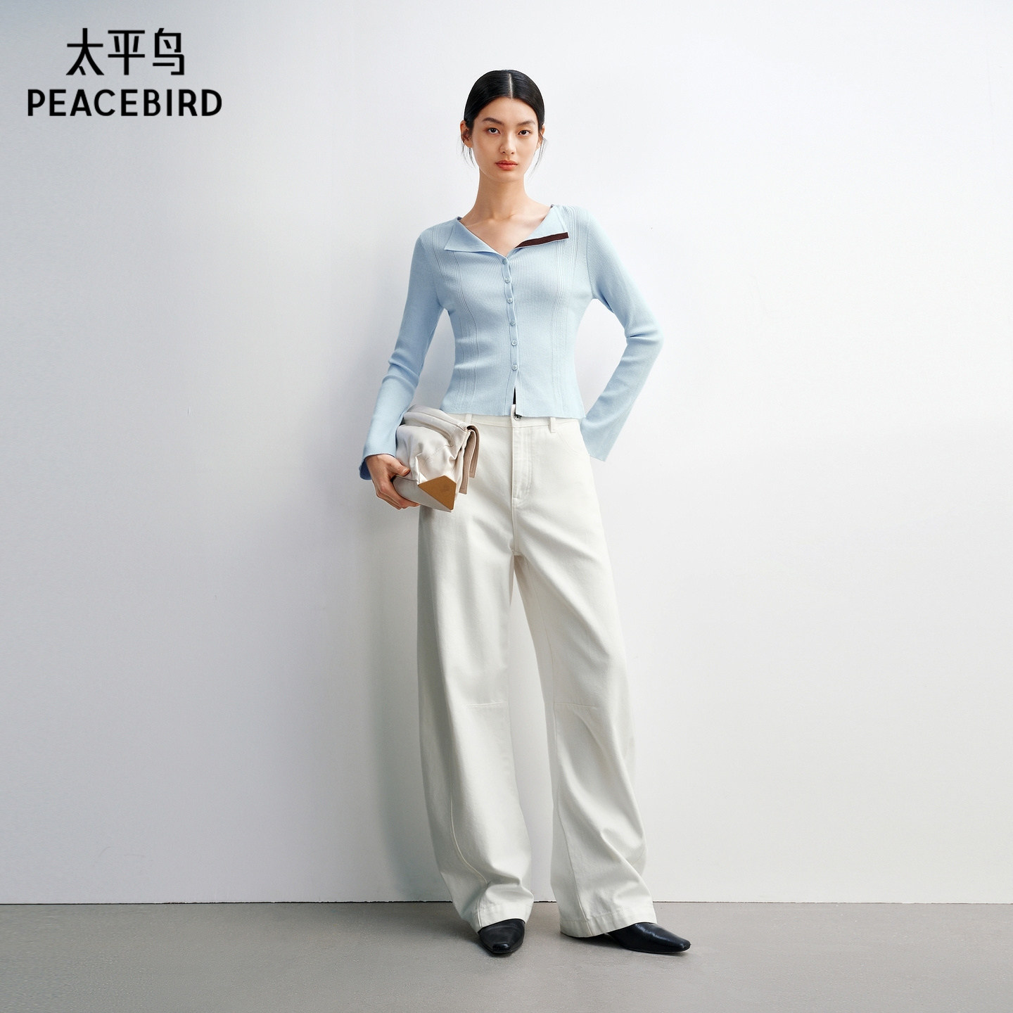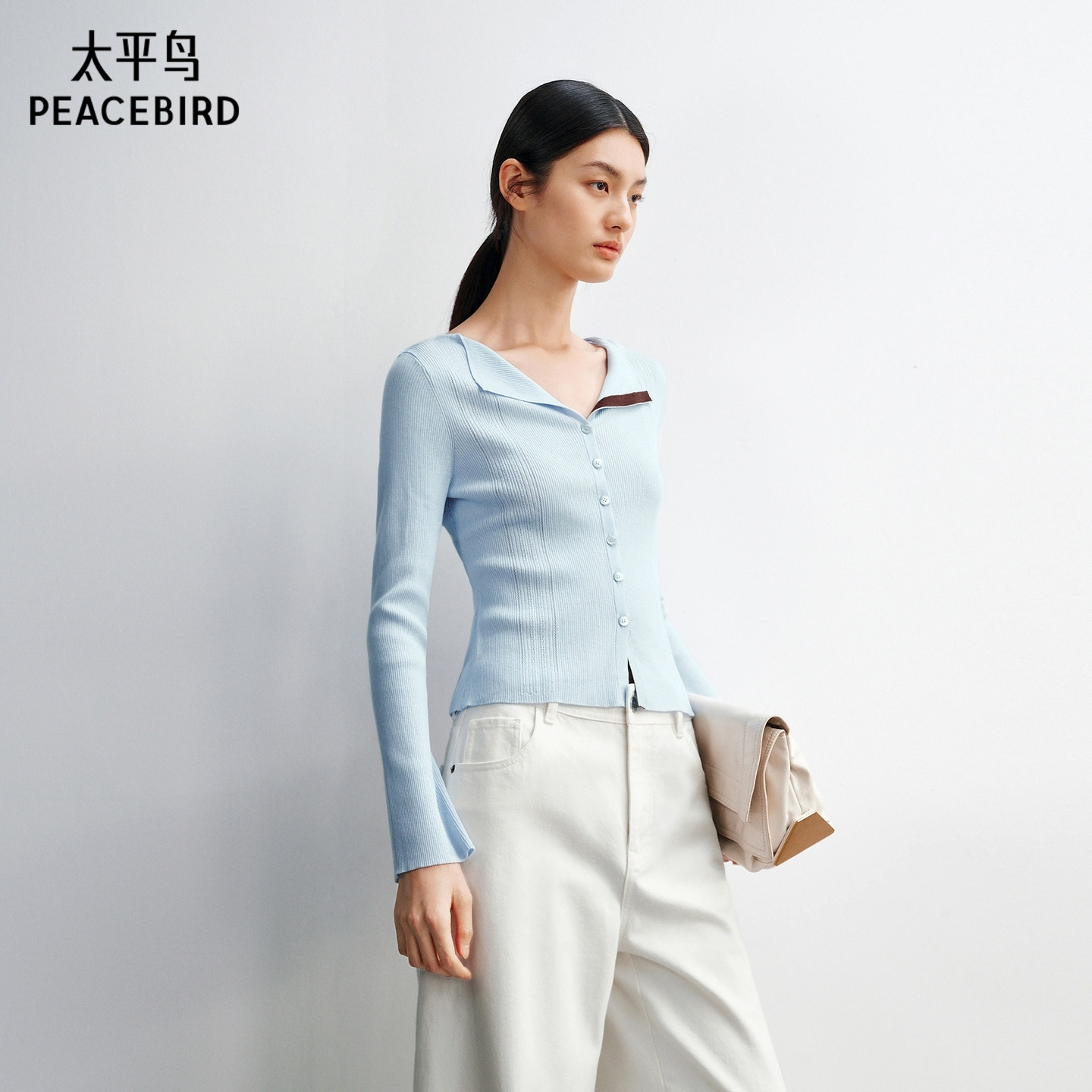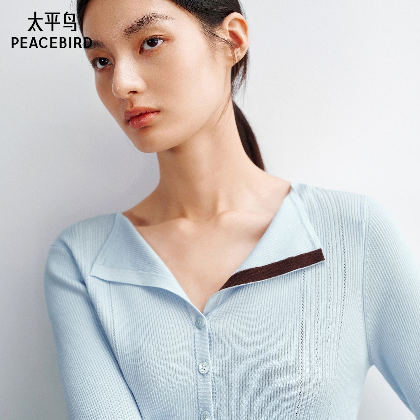 【商场同款】太平鸟打底显瘦三醋酸翻领撞色针织开衫女A1EDG1479