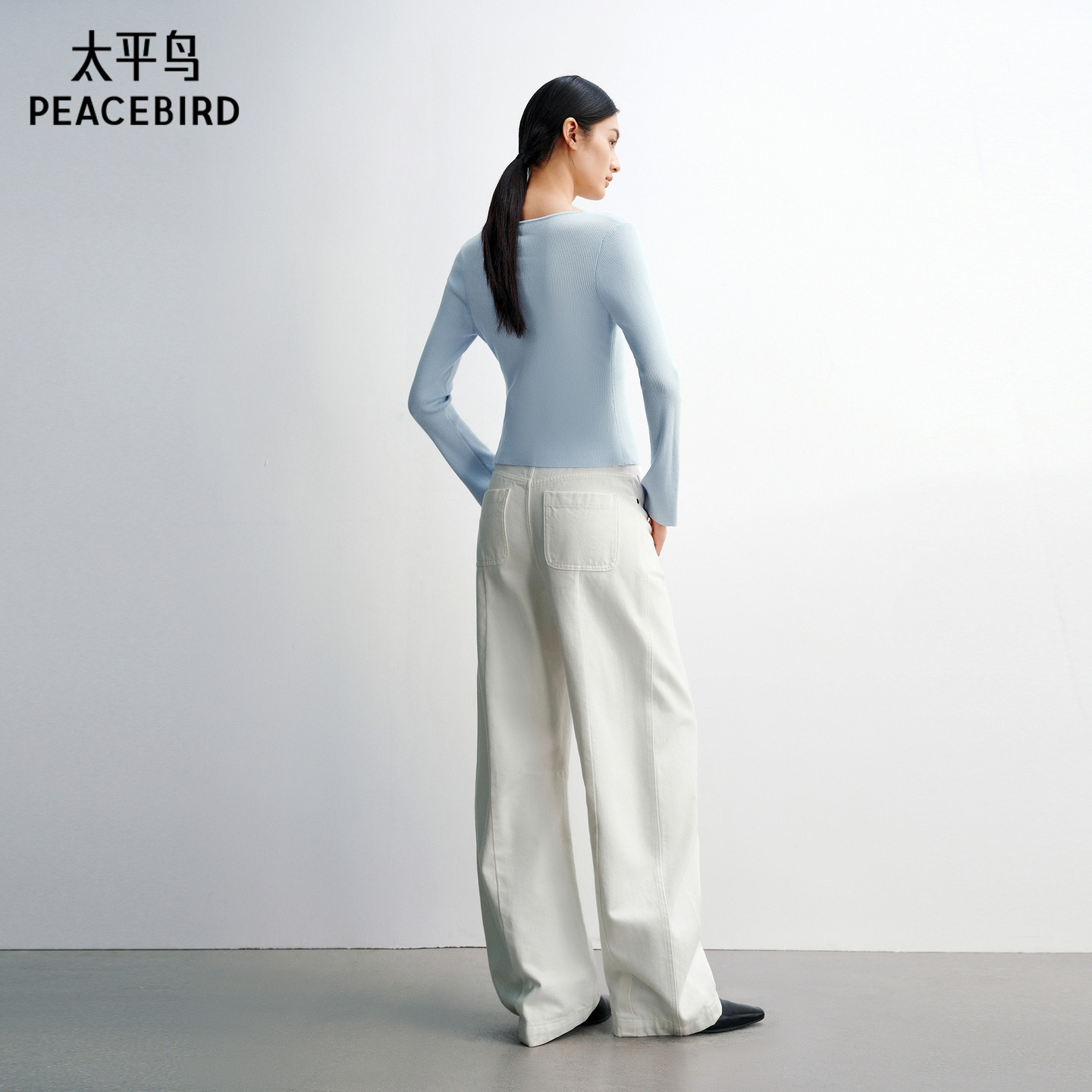 三福长袖上衣2025新款秋季圆领修身针织衫简约纯色内搭打底衫女装