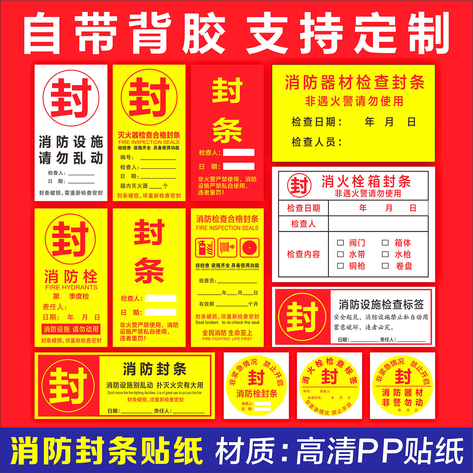 消防器材检查封条消防栓箱门贴不干胶灭火器标签贴纸物业专用定制