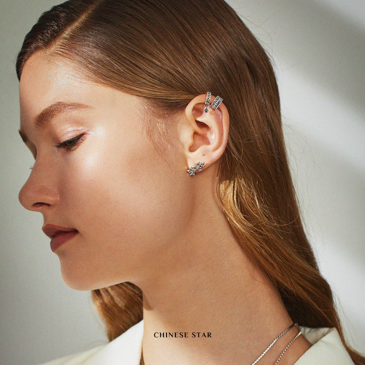 MGS曼古银中国星系列新款925银耳钉国潮精致复古五角星精致耳饰女