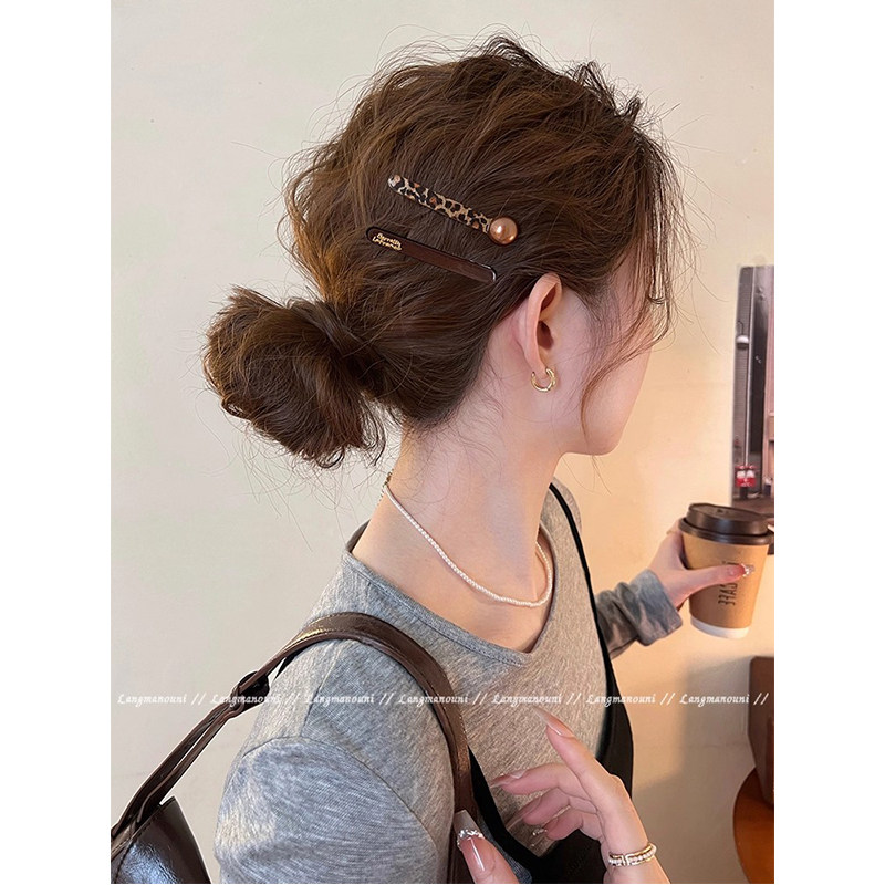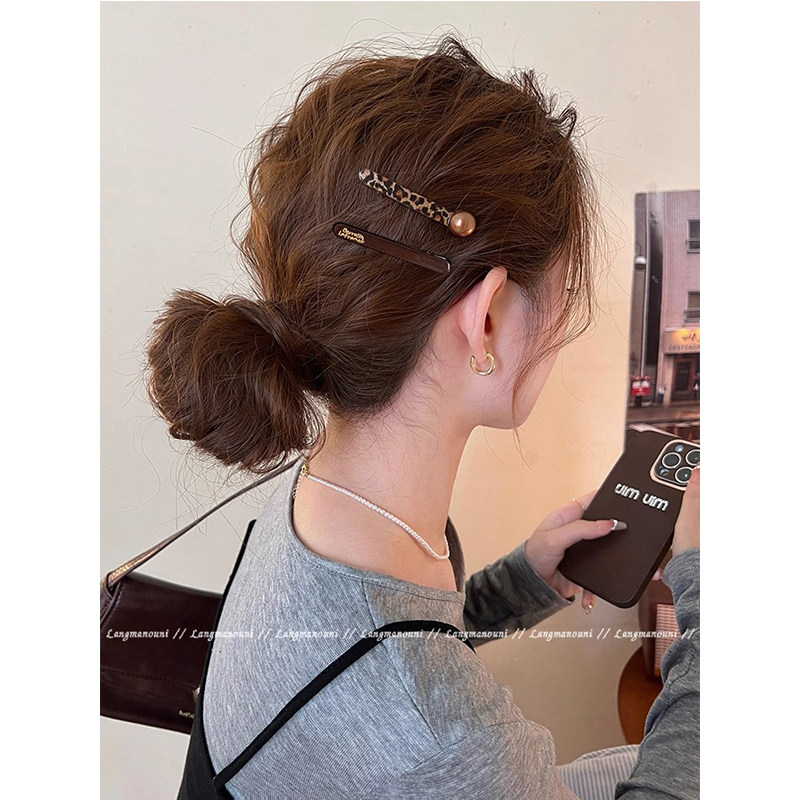 早秋豹纹一字发夹女2025新款高端前额碎发刘海夹子侧边夹发卡发饰