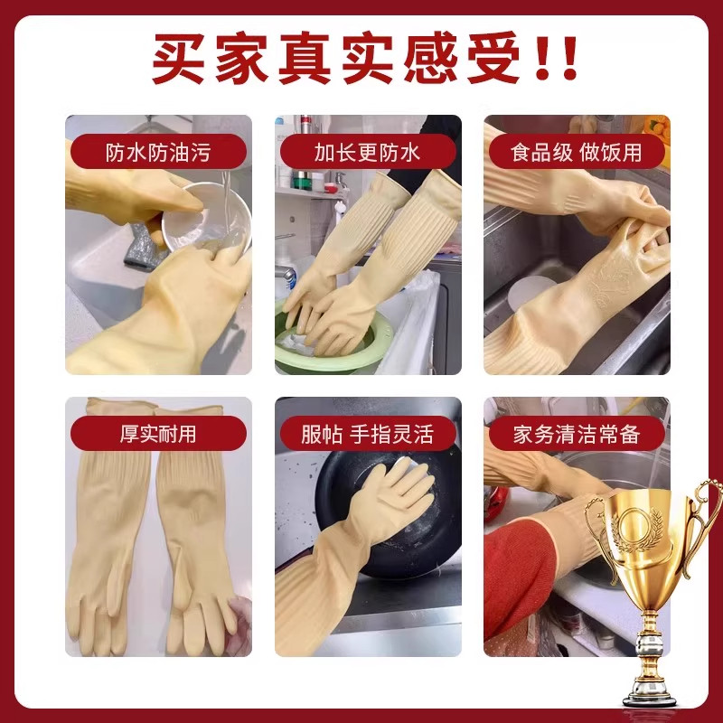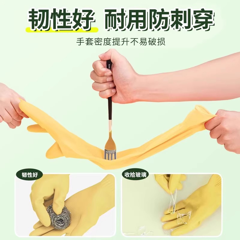 家务手套加长防水耐用橡胶乳胶清洁洗衣服耐磨加厚厨房洗碗专用女