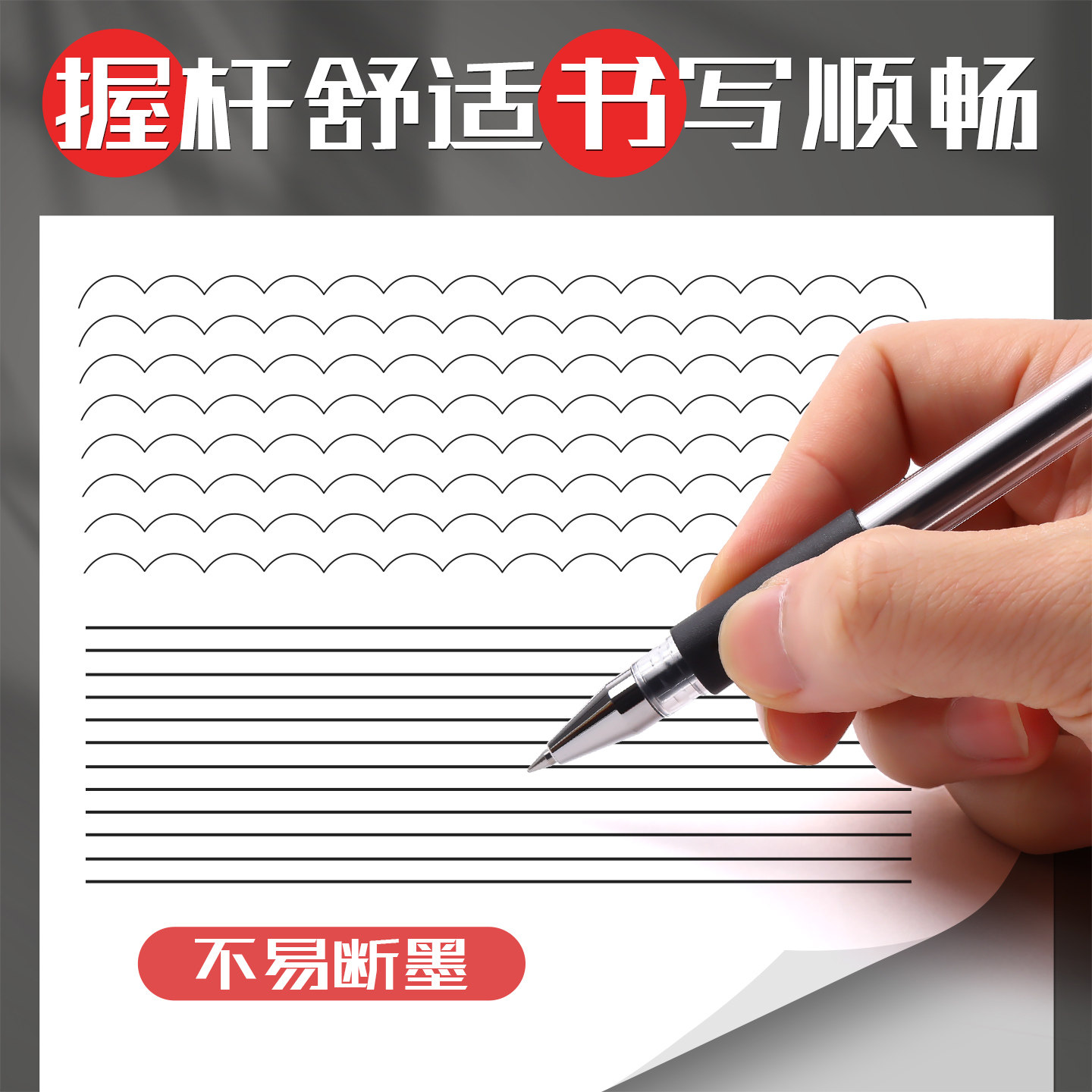 晨光中性笔按动式黑色水笔红色蓝色速干顺滑大容量学生用碳素笔