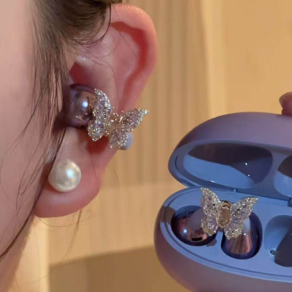 FreeClip耳夹式蓝牙耳机钻扣满钻紫金蝴蝶耳夹装饰耳饰女九紫离火