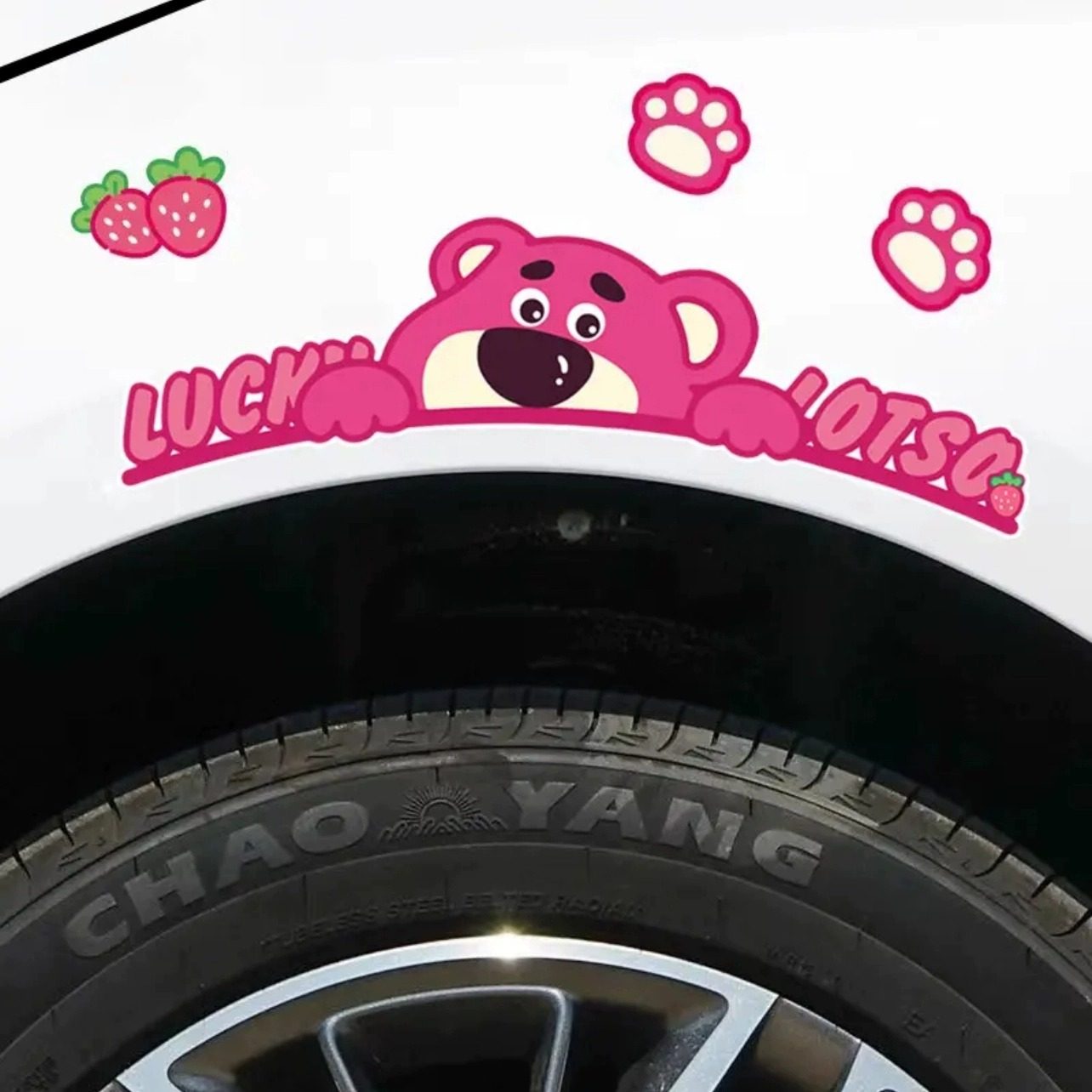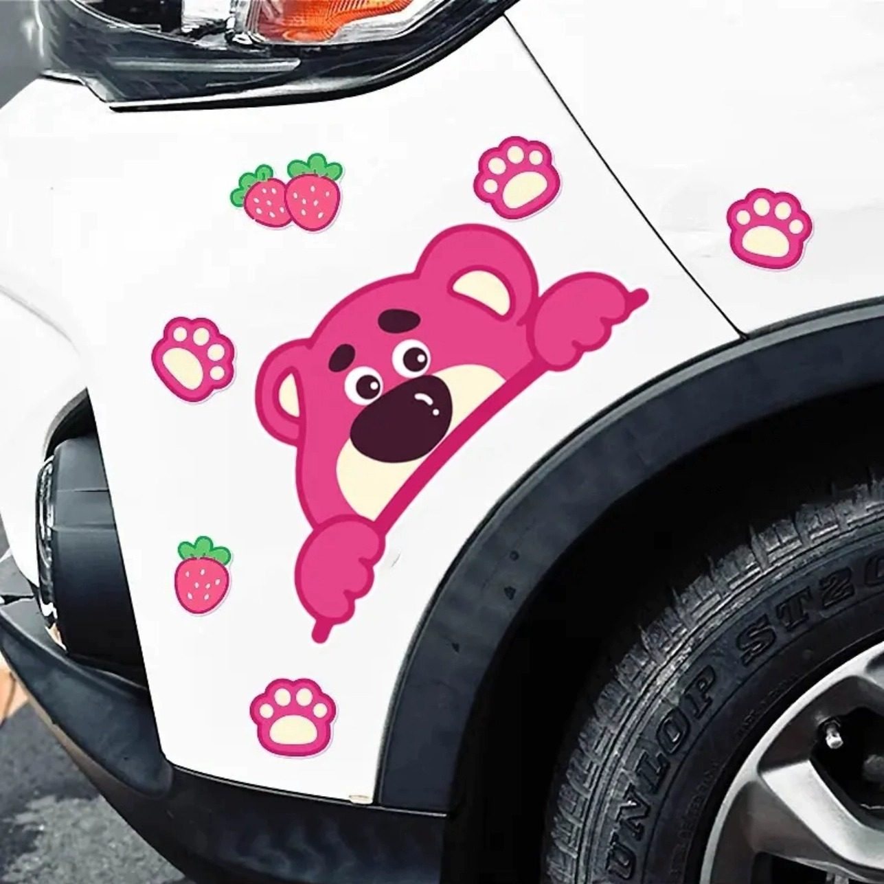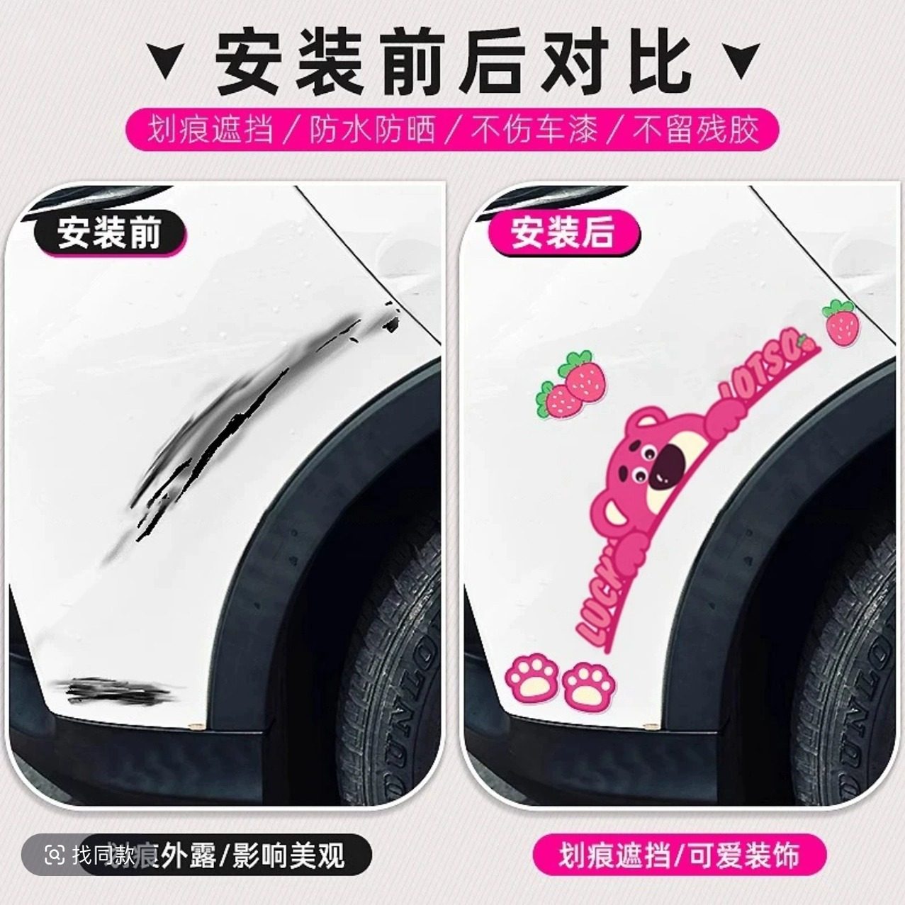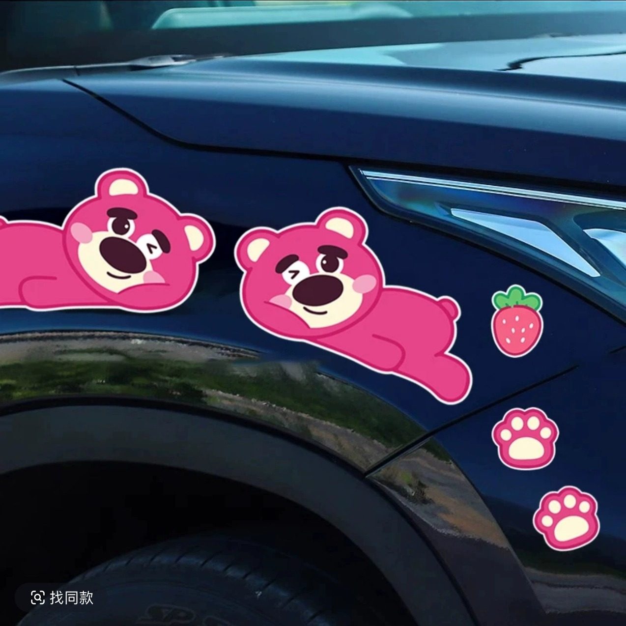草莓熊汽车贴纸轮眉保险杠车身贴划痕遮挡防水电动车个性创意贴画