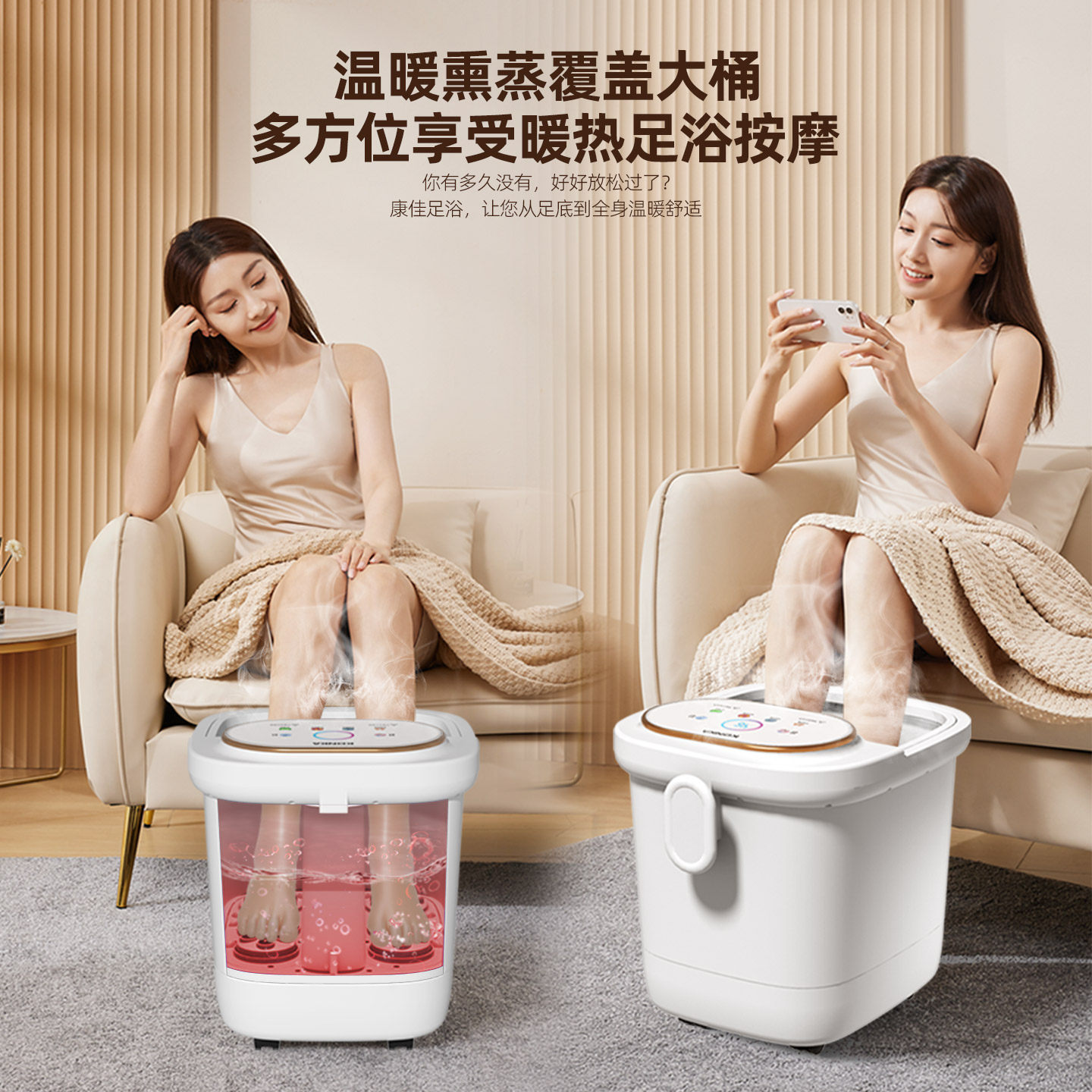 苏泊尔泡脚桶加热恒温足浴盆电动按摩洗脚盆全自动家用高深足疗机