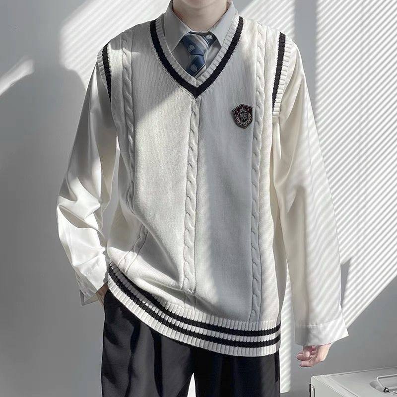 学院风套装日系JK/DK制服宽松V领针织毛衣背心外套男女线衣班服潮
