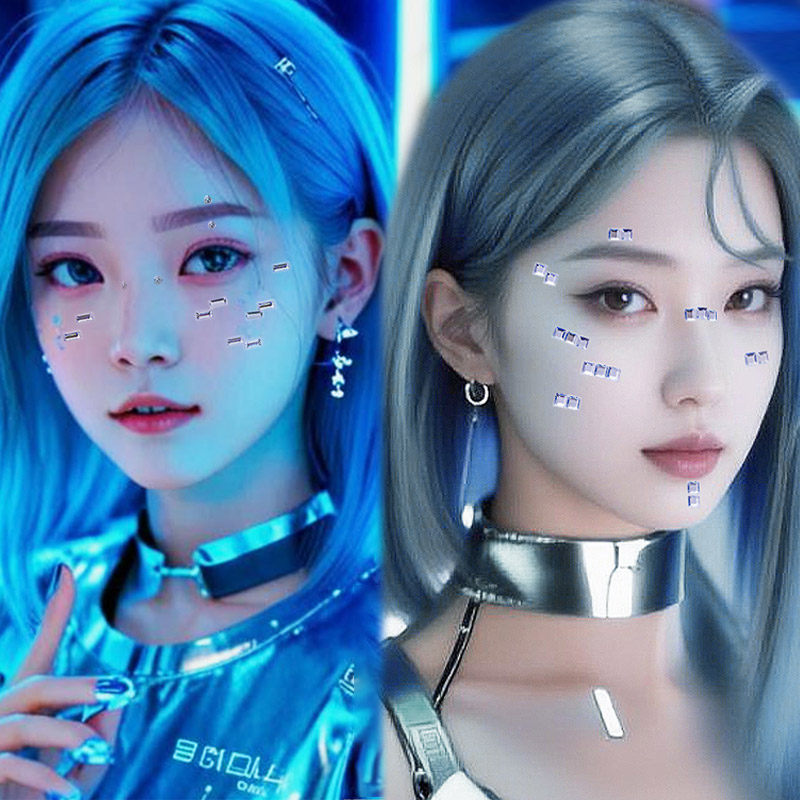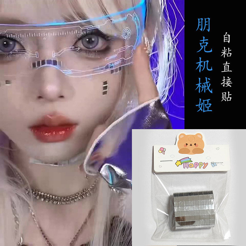 机械姬AI贴纸赛博朋克风仿妆音乐节镜面妆金属妆容COS妆面部装饰机器人高级马赛克diy创意自粘脸贴装表演道具