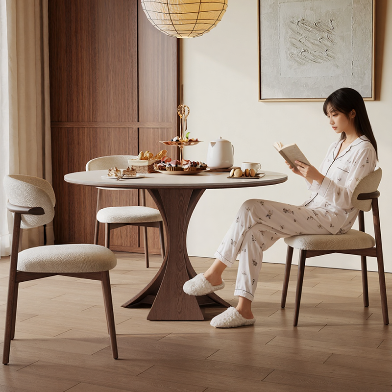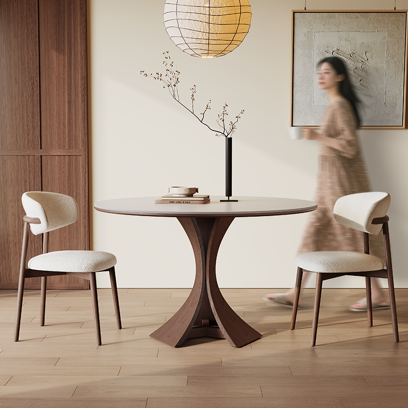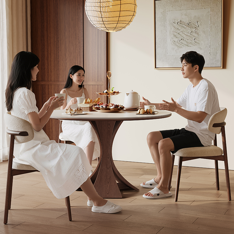 北欧实木餐桌圆形带转盘6人家用现代简约意式高端亮光岩板圆餐桌