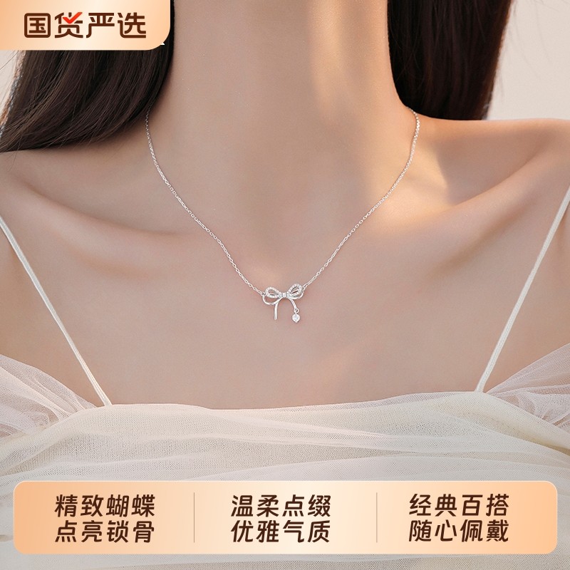S999纯银蝶梦蝴蝶结项链女款轻奢精致高级感锁骨链生日礼物送女友