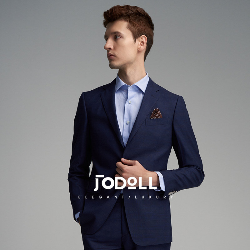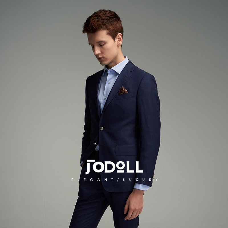 JODOLL乔顿【桑蚕丝羊毛】西服套装商务正装修身格纹西裤西装套装