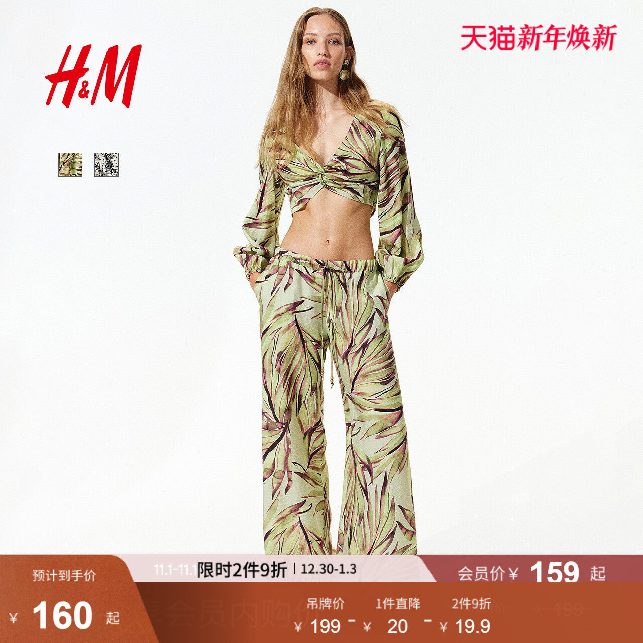 HM女装休闲裤冬季宽松潮流柔软气质抽绳阔腿裤1262105