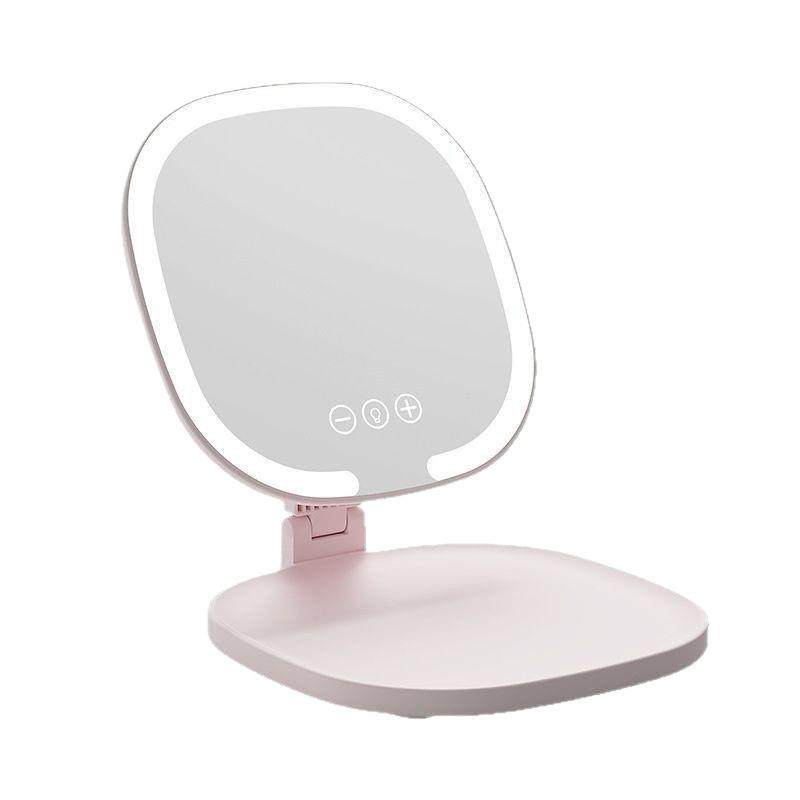 25年新款LED办公室宿舍折叠便携带灯梳妆镜台式桌面补光镜