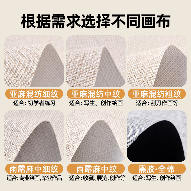 专业油画布成品亚麻混纺画布细纹中纹粗纹雨露麻棉麻涂层成品油画框画布水彩丙烯颜料画布超长油画布料肌理画