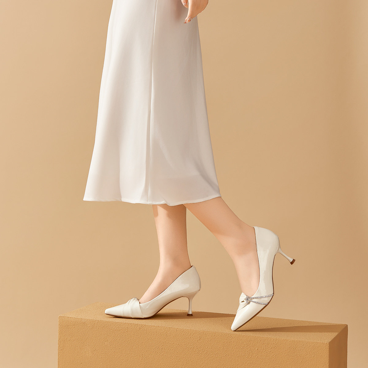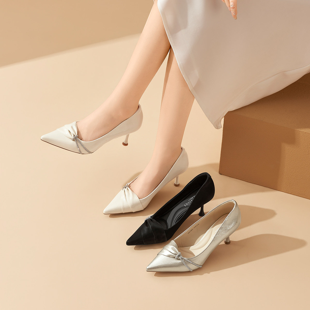 戈美其法式高跟鞋2025新款秋季尖头婚鞋气质浅口单鞋小香风伴娘鞋