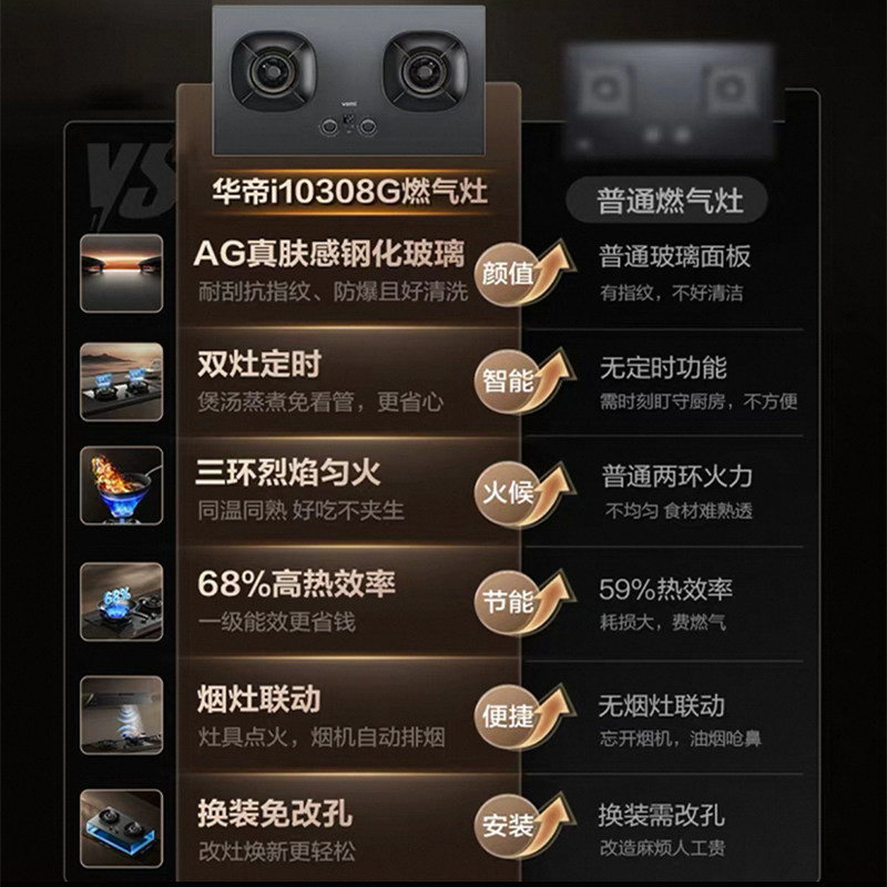 Vatti/华帝 i10308G定时煤气灶家用双灶台天然气官方旗舰官方正品