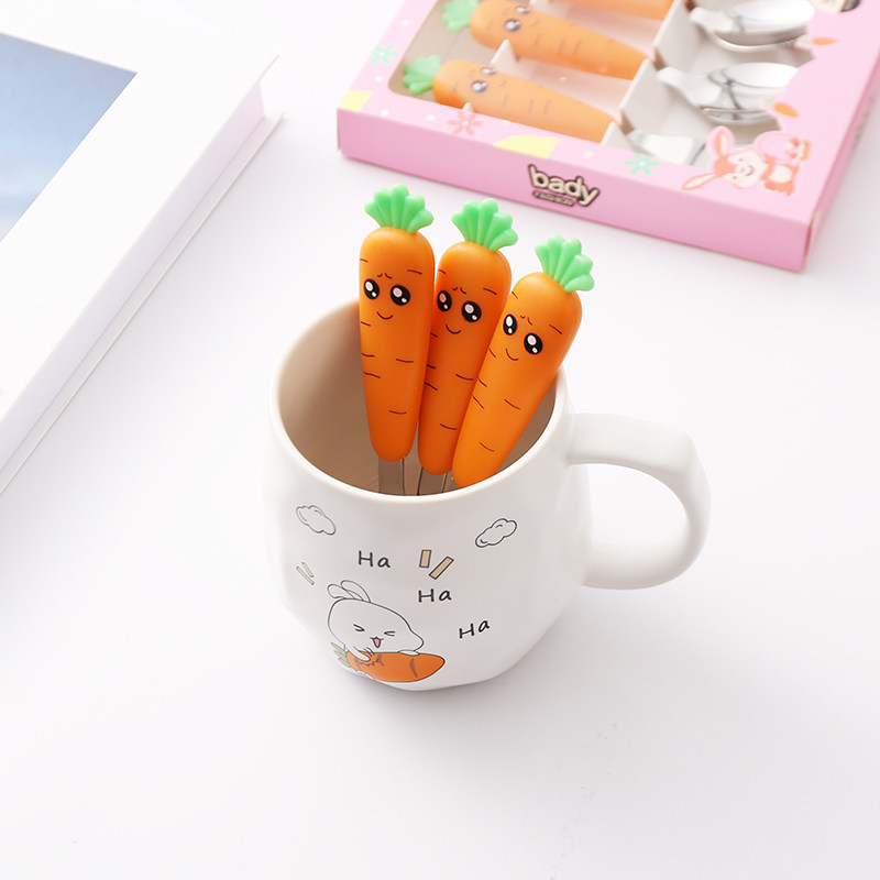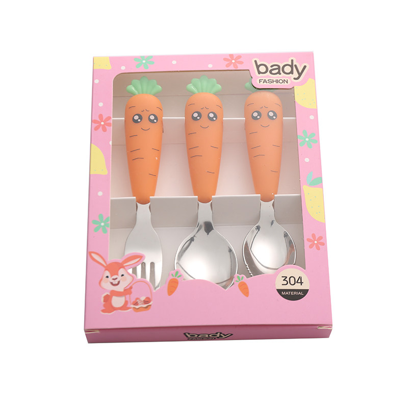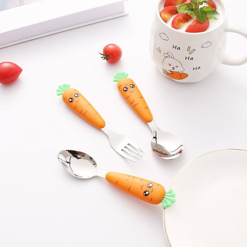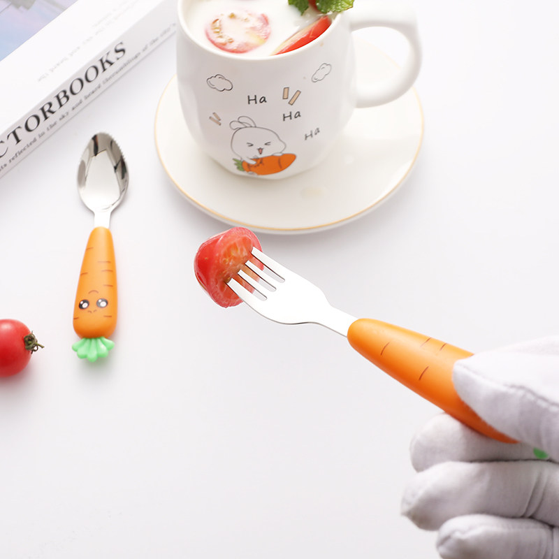 卡通胡萝卜可爱学吃饭不锈钢勺子短勺叉婴儿童餐具辅食刮泥勺