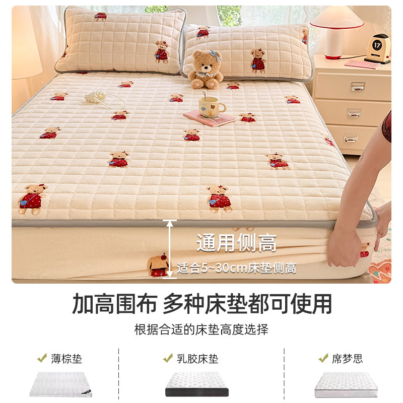 无印良品加厚床笠冬季夹棉牛奶绒床笠罩床单床垫保护罩2025新款