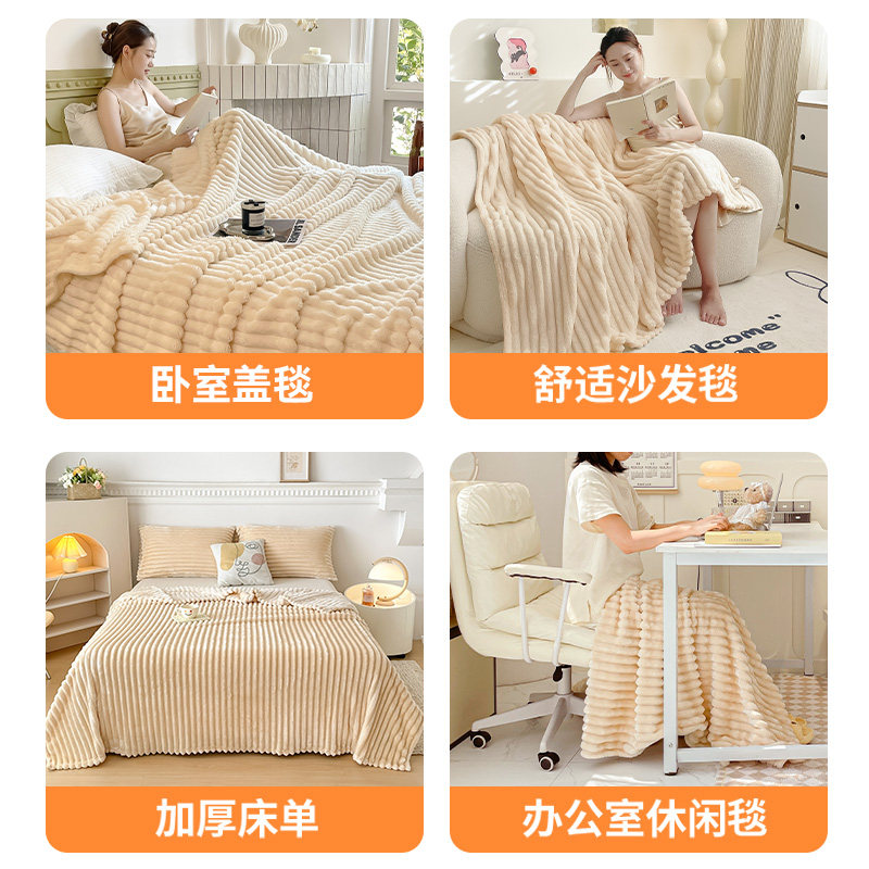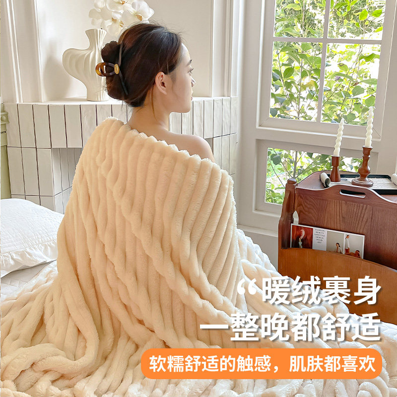 加厚仿兔毛多功能毛毯家用加绒床单绒毯子午睡披肩盖毯沙发空调毯