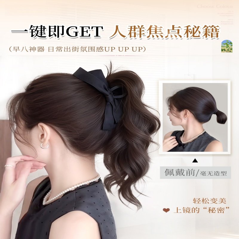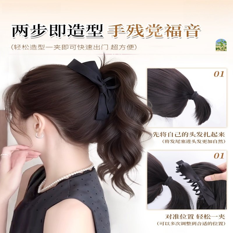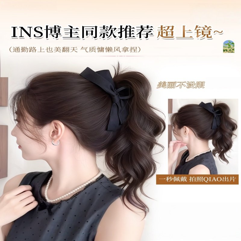 假发辫马尾女仿真发蝴蝶结抓夹卷马尾自然增发量网红同款马尾假发