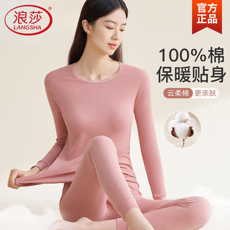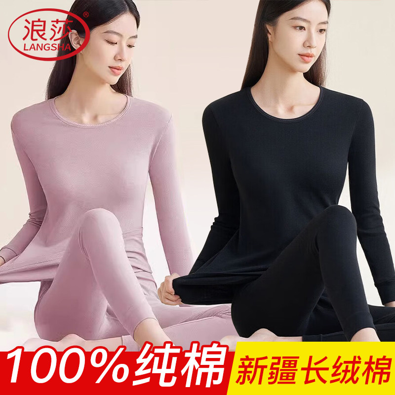 浪莎保暖内衣套装纯棉全棉秋冬打底棉毛衫薄款女士秋衣秋裤贴身