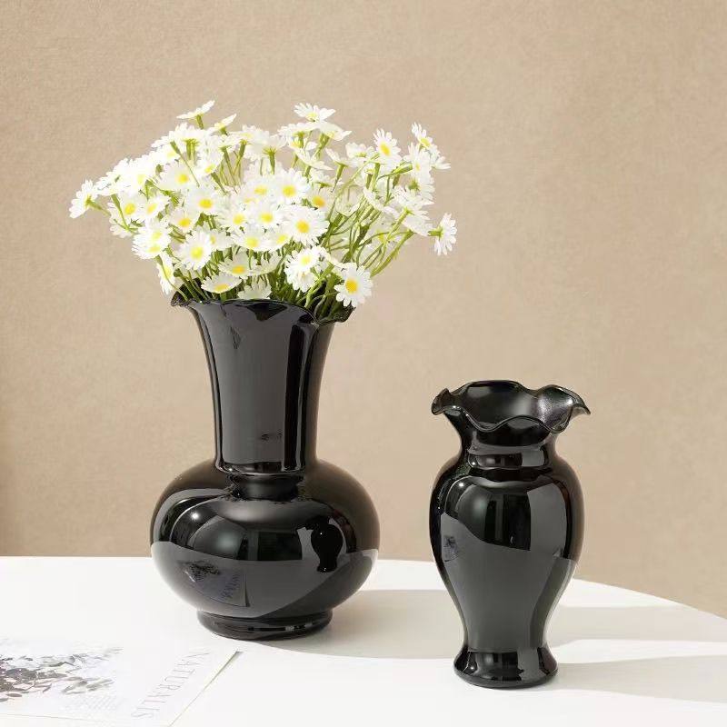 中古芬顿花瓶摆件客厅插高级玻璃卧室插花黑色电视柜紫色绿色桌面
