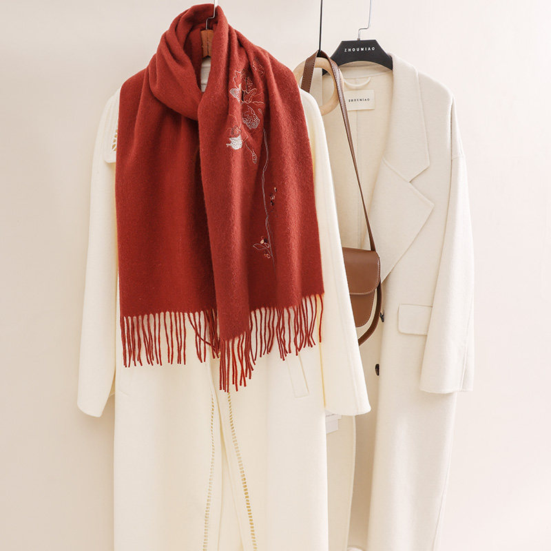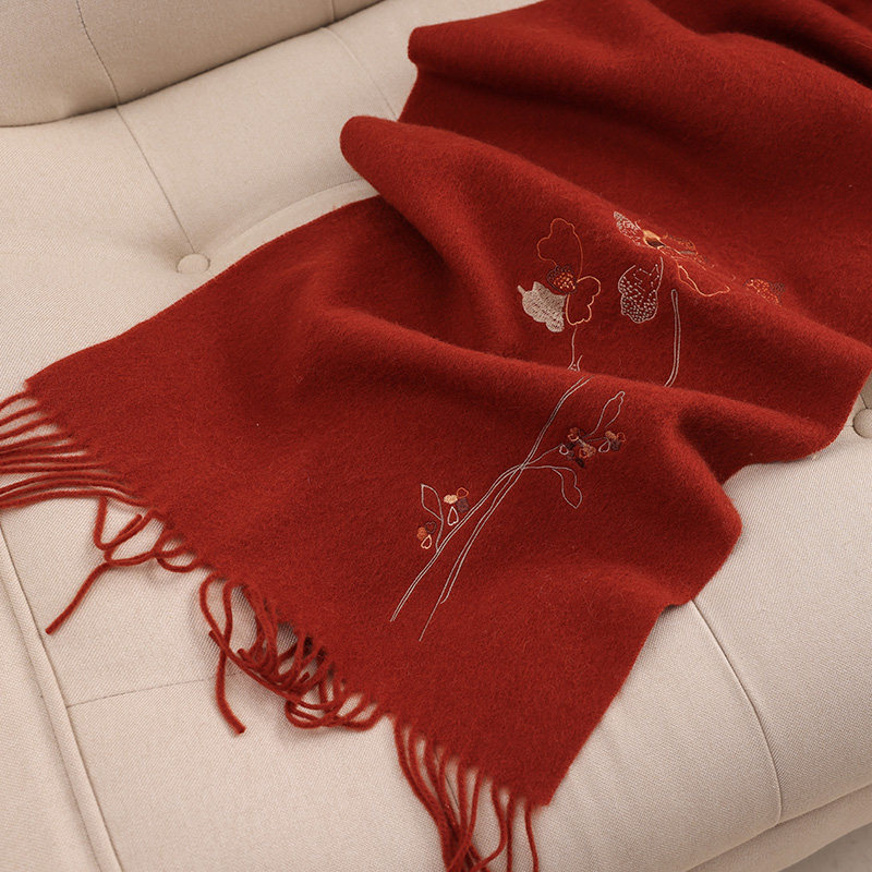 恒源祥羊毛围巾女士秋冬季送送妈妈刺绣围脖奶奶大披肩送长辈礼物