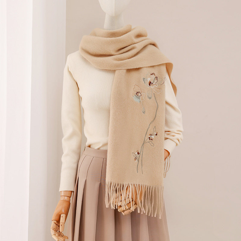 上海故事2025秋冬新款围巾女绵羊毛刺绣加厚保暖披肩女送长辈礼盒