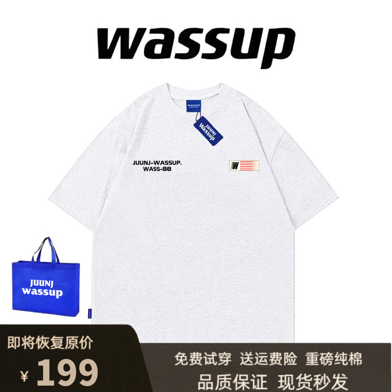 WASSUP国潮牌美式复古短袖男女夏季重磅纯棉情侣高街宽松T恤上衣