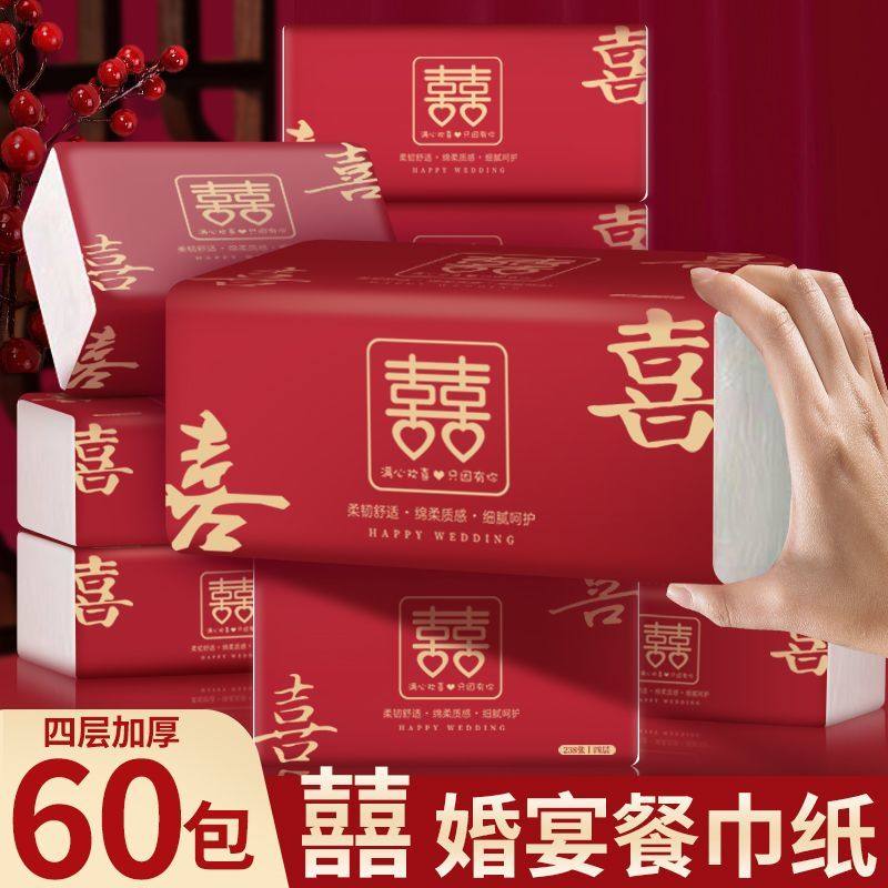 婚庆餐巾纸婚礼结婚卫生纸红色喜字纸巾抽纸批发整箱小包纸抽喜事