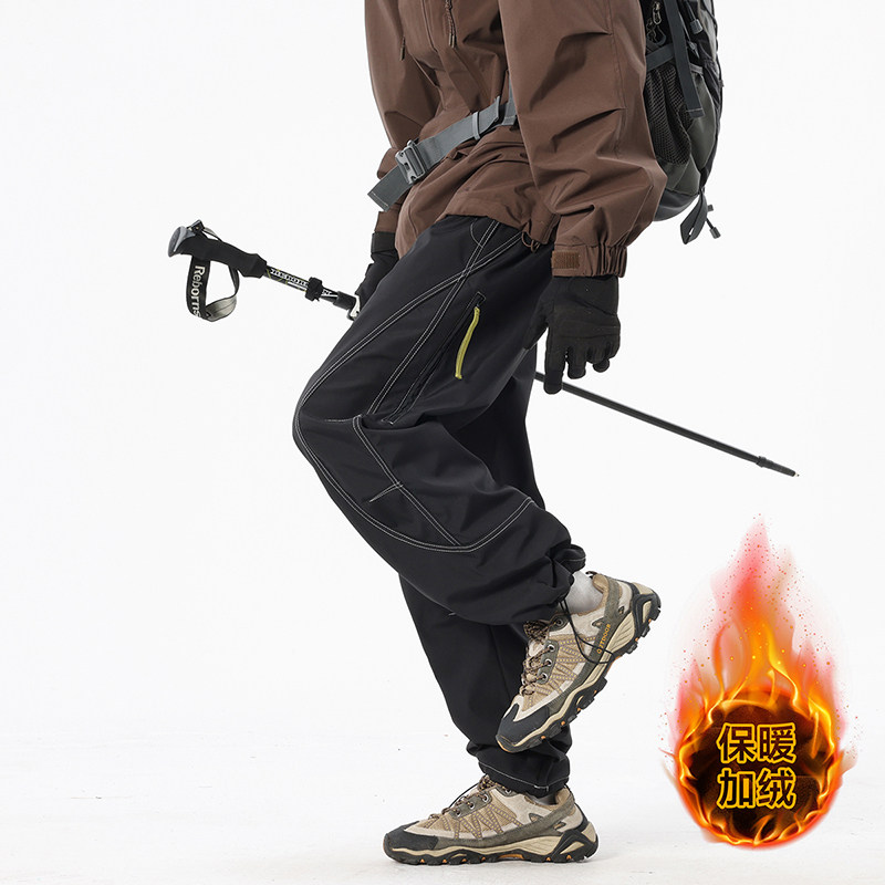 BENPANDA 2025冬加绒防泼水休闲裤户外登山伞兵裤直筒裤子男款