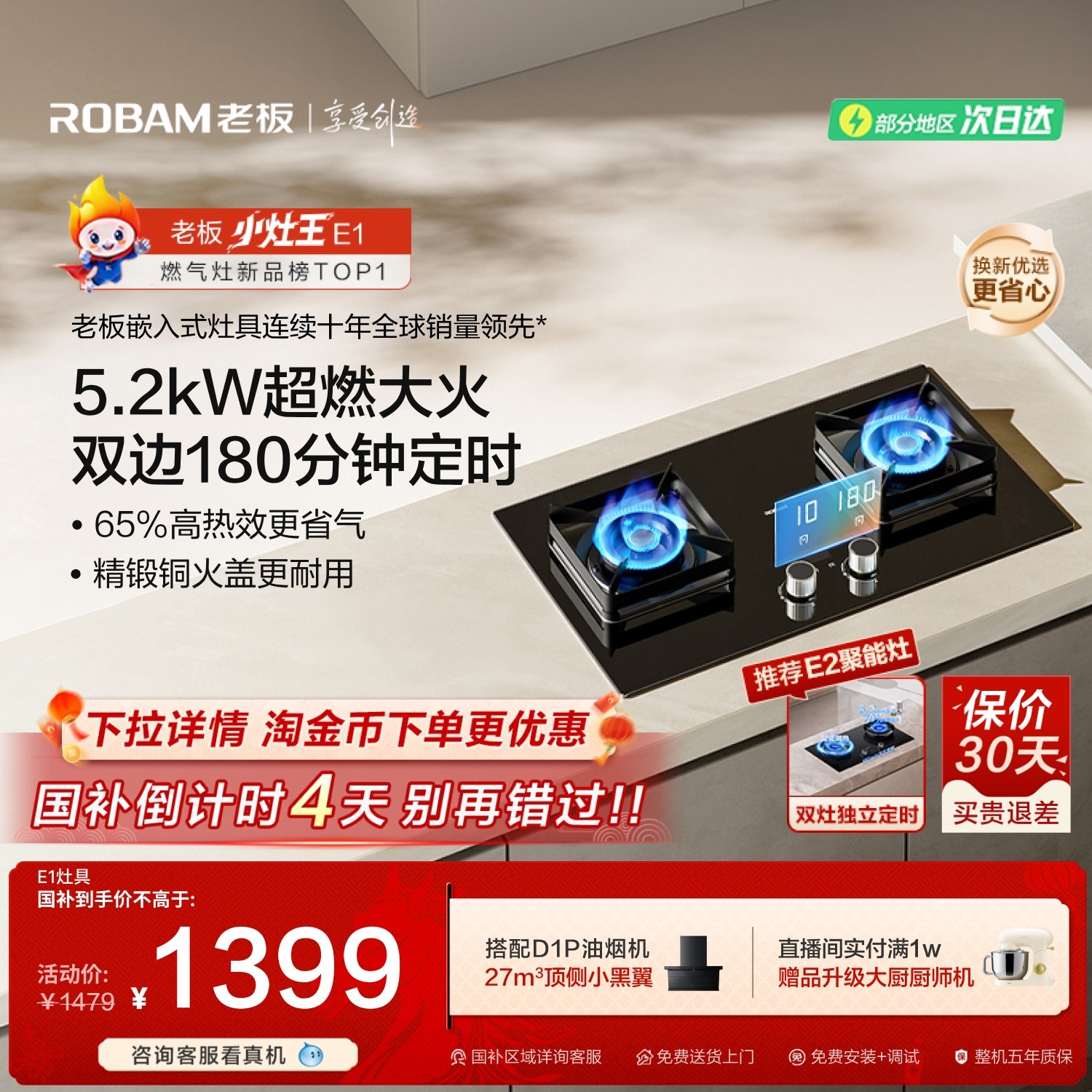 [小灶王]老板定时燃气灶家用双灶猛火灶E1天然气煤气灶台官方旗舰