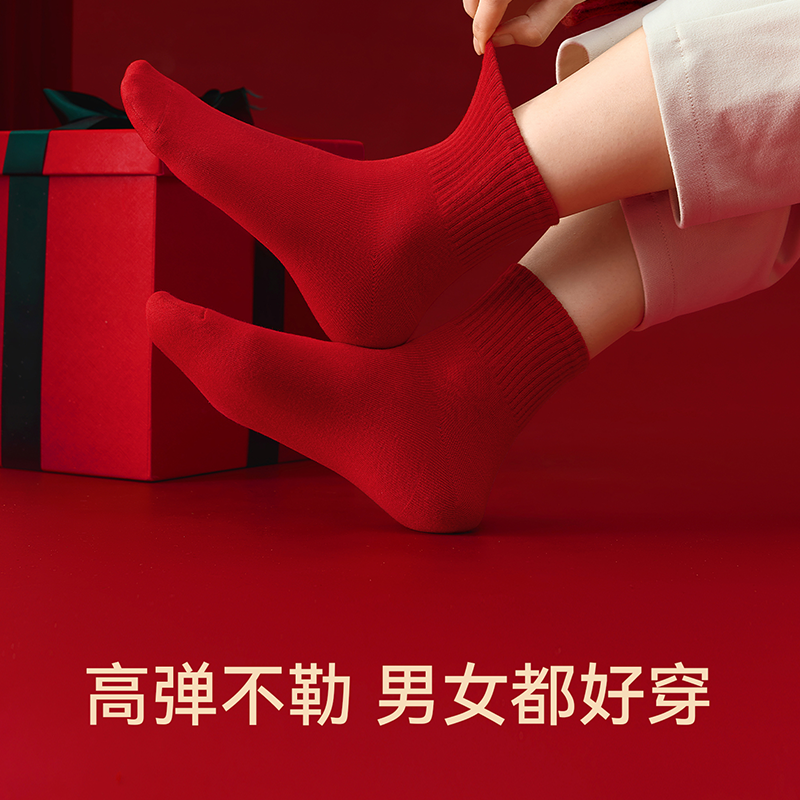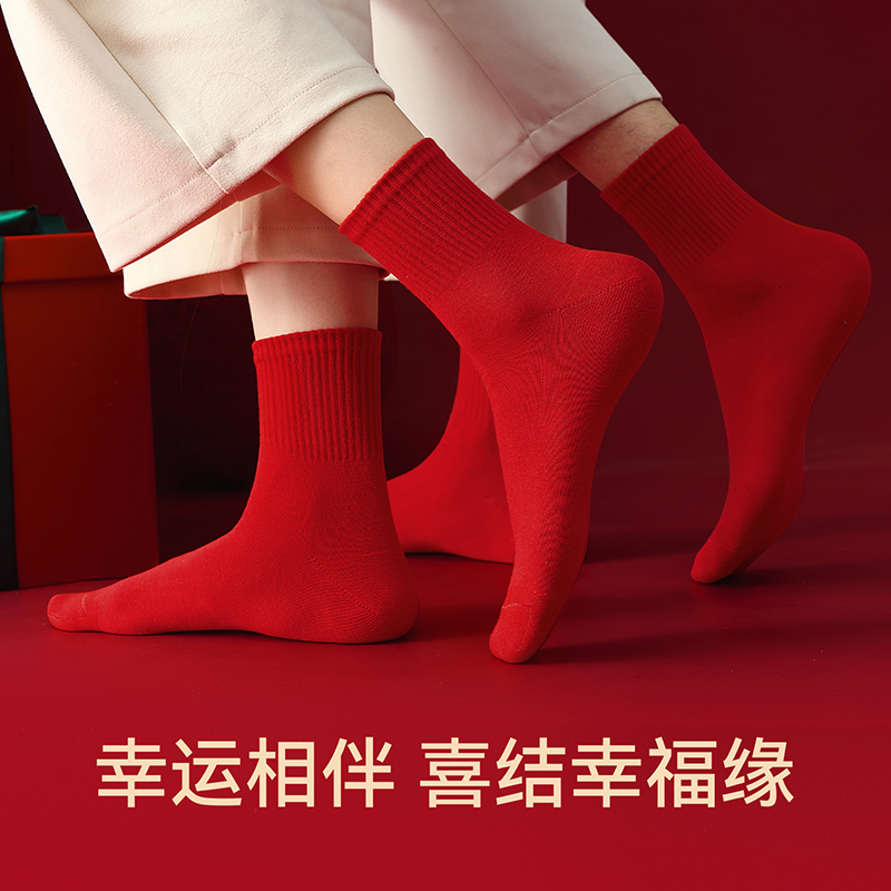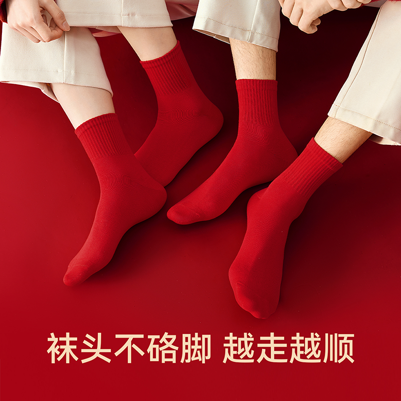 情侣红色袜子男女本命年纯棉中筒袜2026新款爆款秋冬结婚红袜吸汗