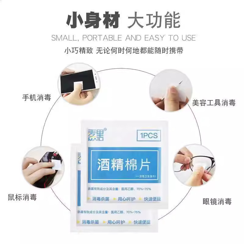 75度酒精棉片100片一次性消毒棉棒大号湿巾手机眼镜美甲独立包装