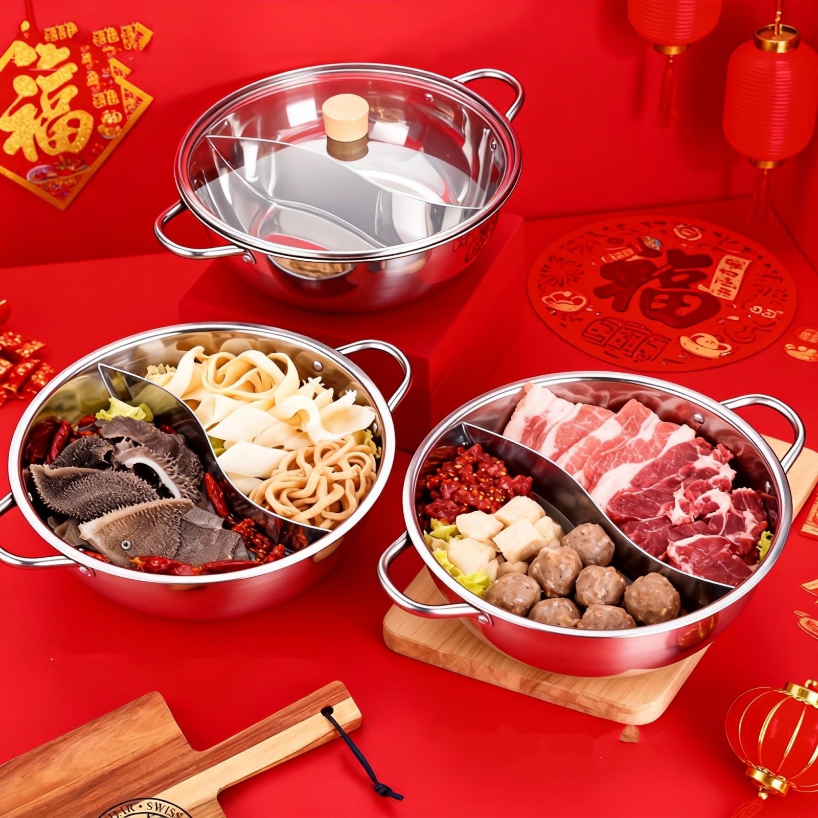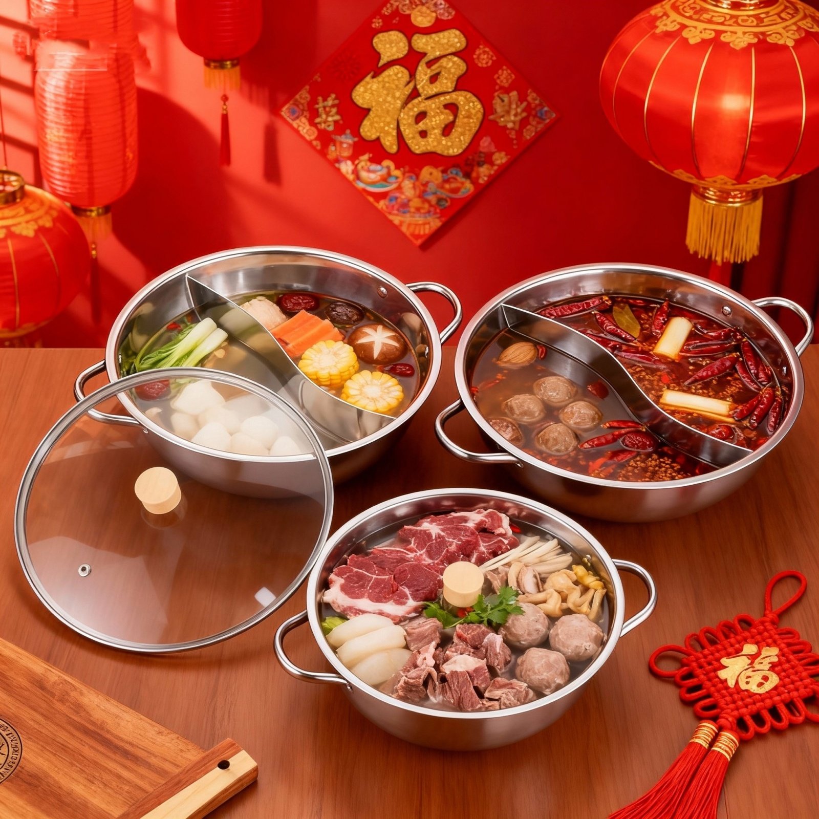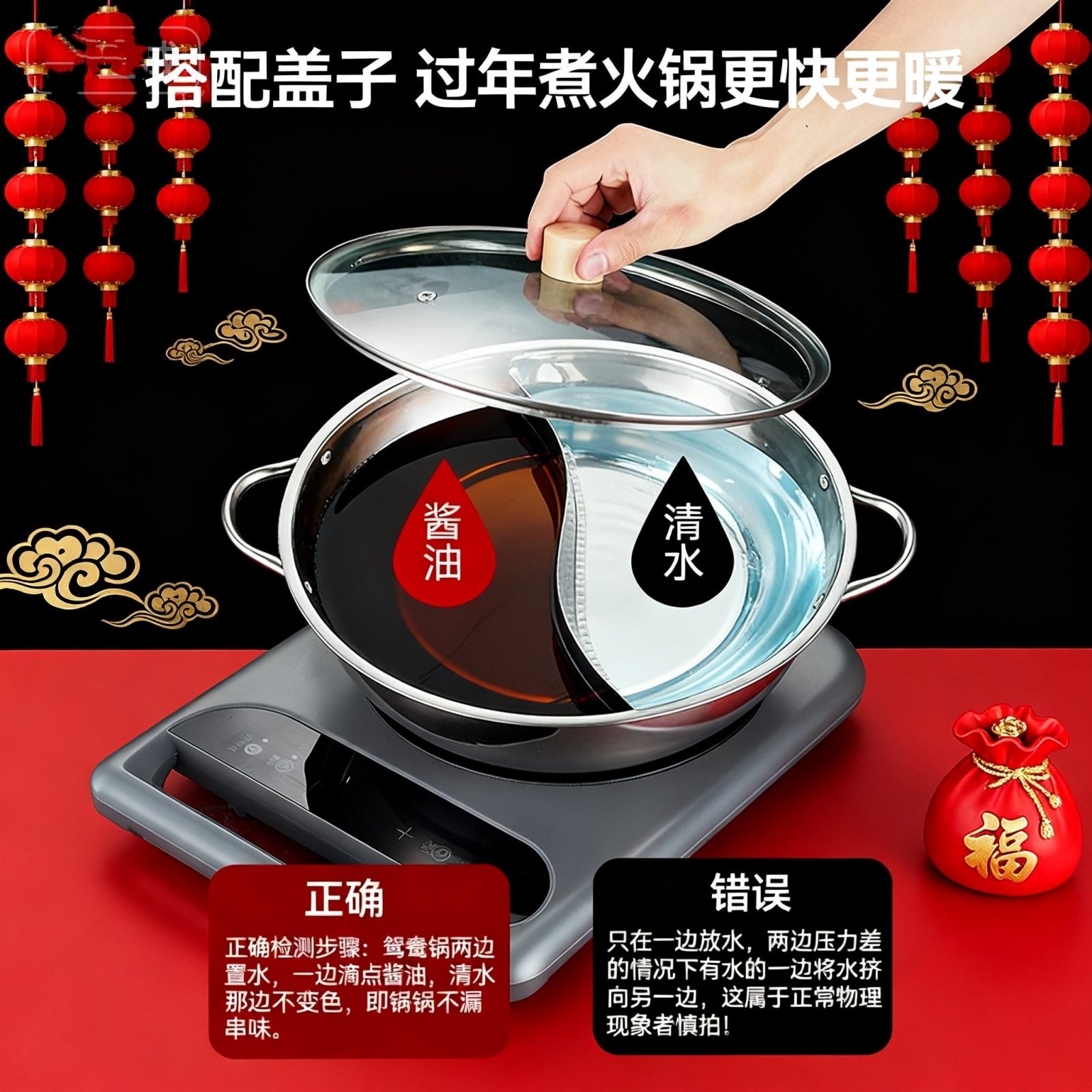 电磁炉专用不锈钢火锅盆加厚清汤锅干锅鸳鸯锅家用火锅锅具商用