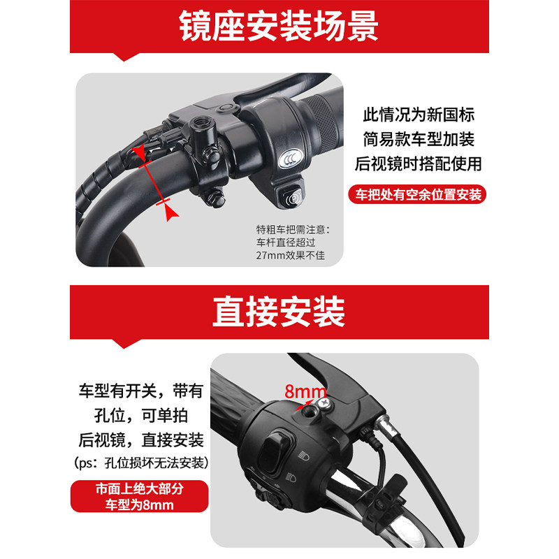 电动电瓶车后视镜自行车圆镜适用雅迪爱玛大视野倒车反光镜子通用