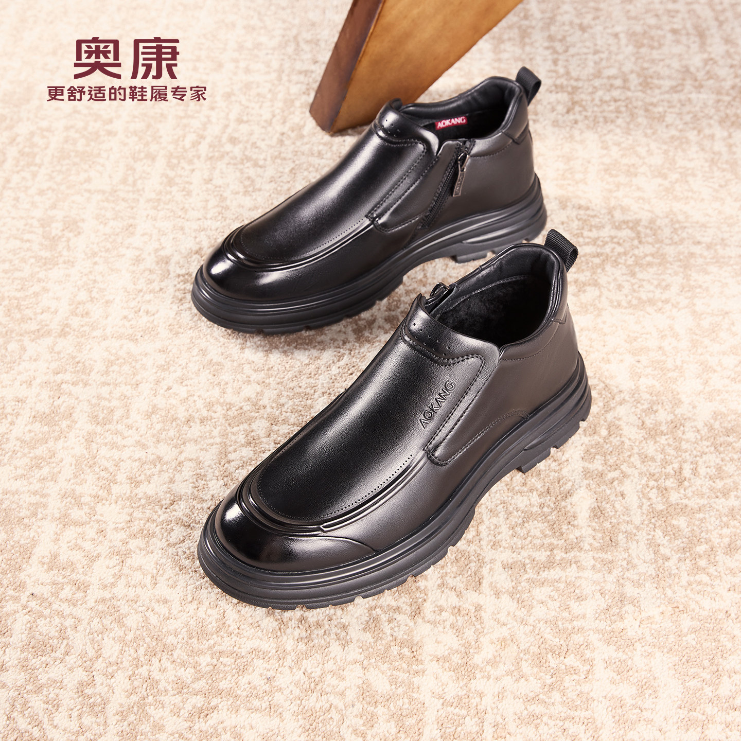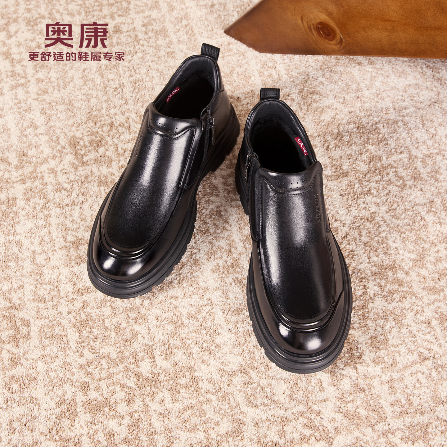 奥康 男鞋2025冬季新款乐福鞋商务正装皮鞋加绒保暖一脚蹬豆豆鞋