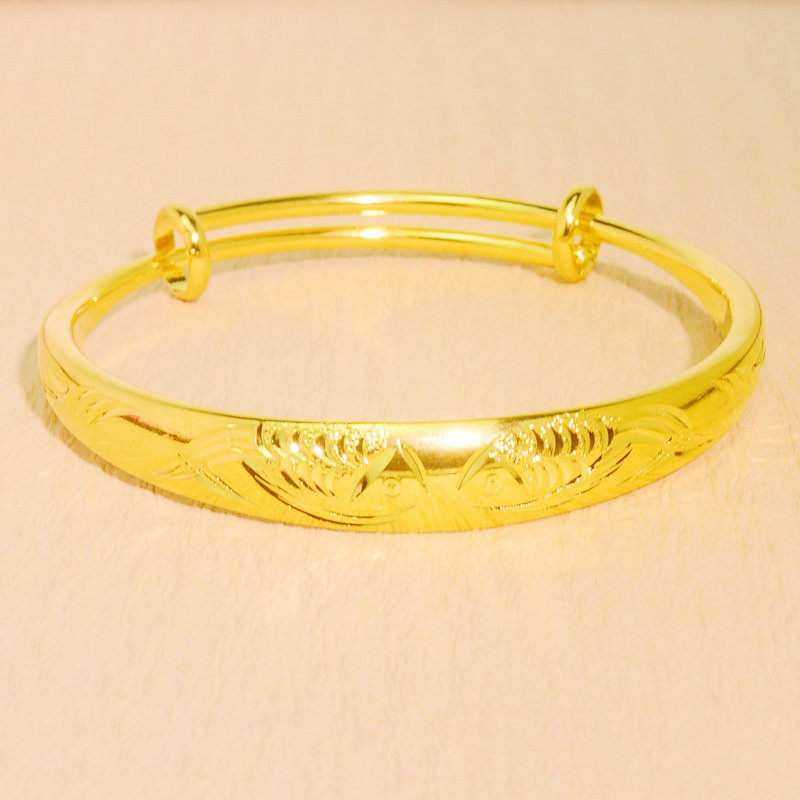 越南沙金手镯女推拉龙凤实心不掉色镯子家手首饰品满天星镀金麻花