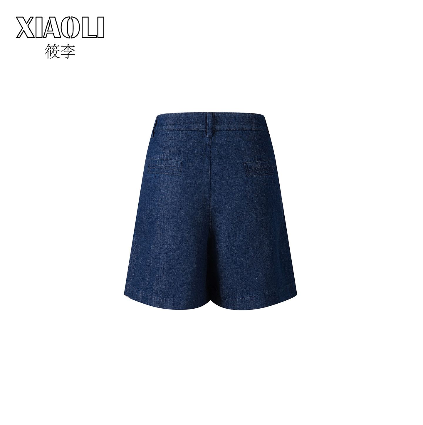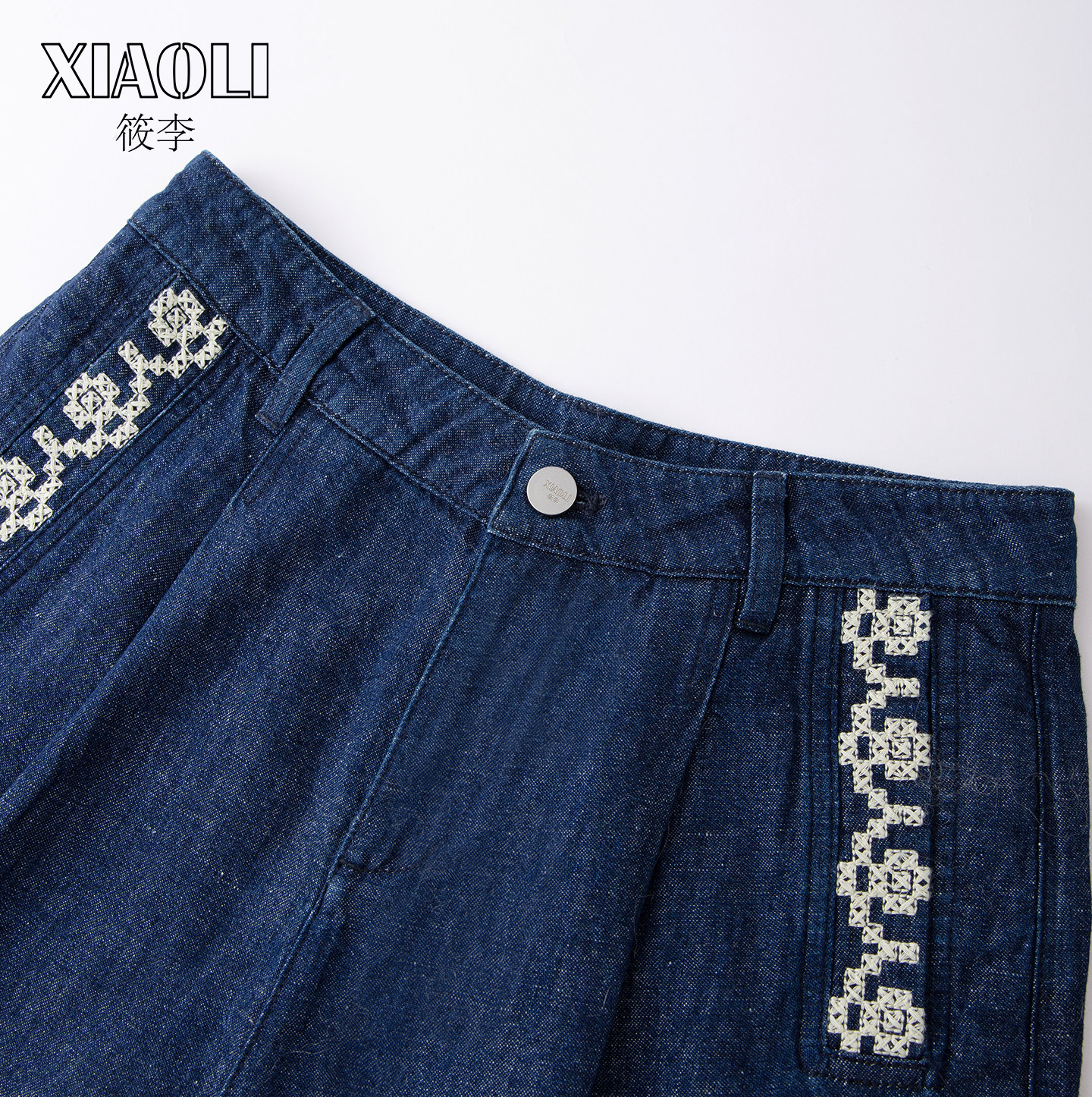 【XIAOLI筱李】美式休闲宽松绣花藏青色十字绣牛仔短裤女25秋新品