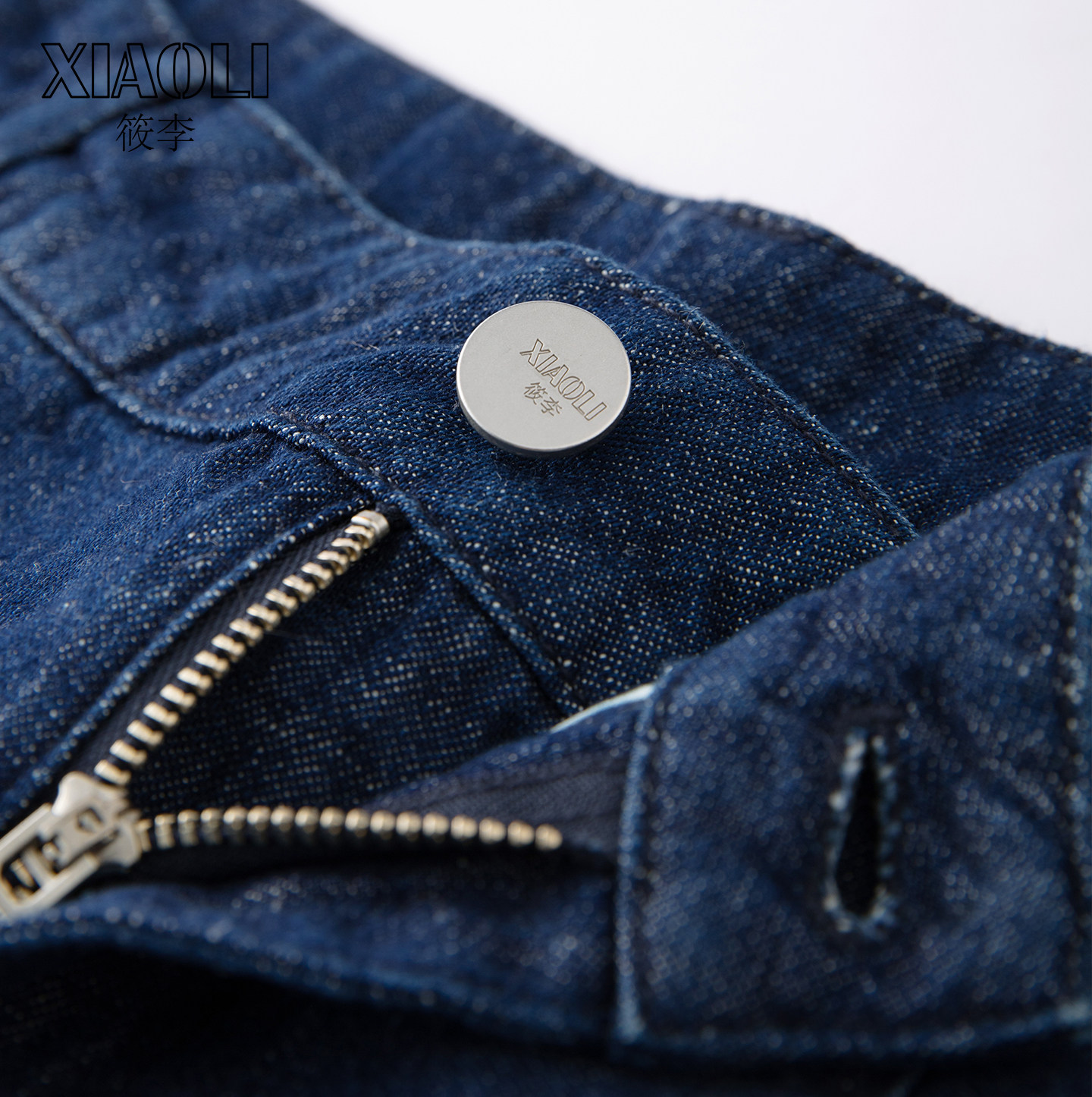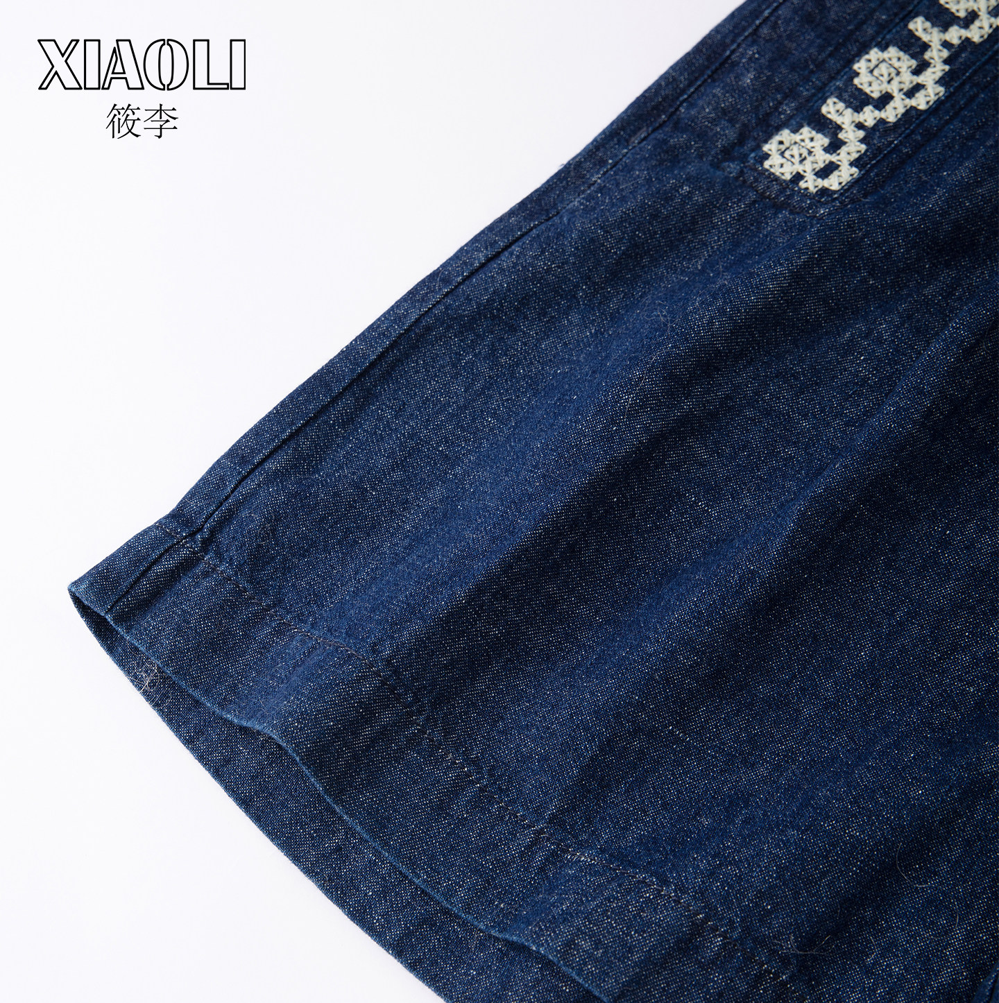 【XIAOLI筱李】美式宽松绣花深蓝牛仔短裤