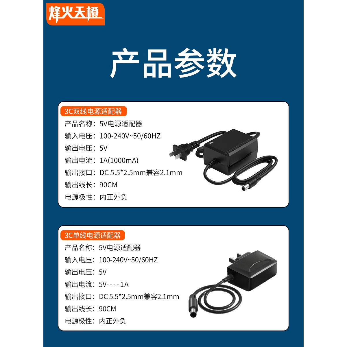 烽火天橙12V2A/5V2A电源适配器光纤收发器光端机机顶盒监控交换机5伏2安DC5V1A单/双线电源2.5mm接口3C认证